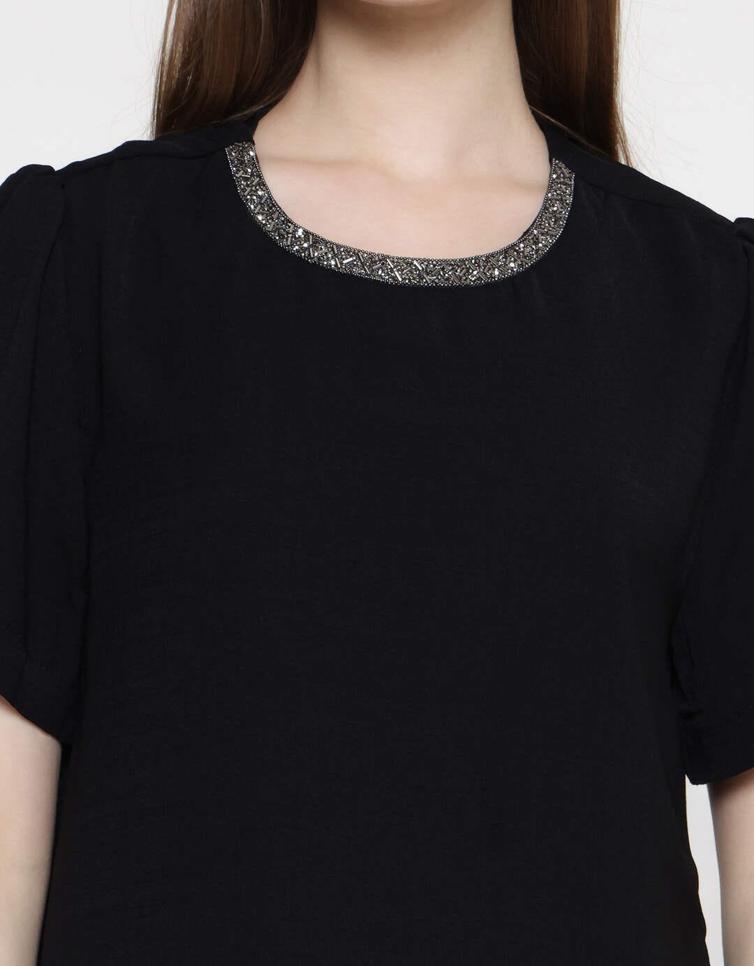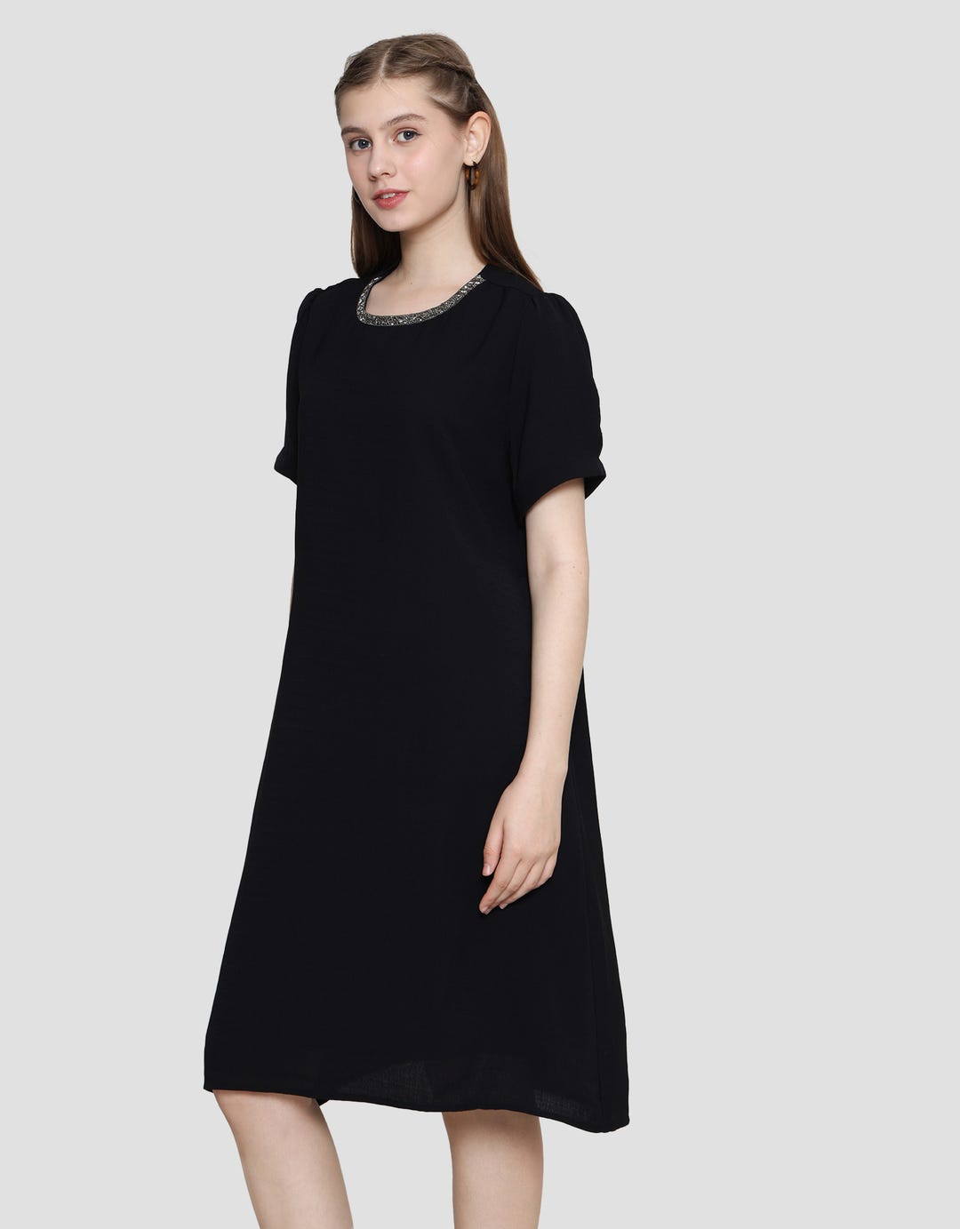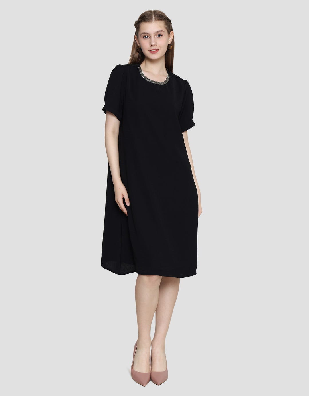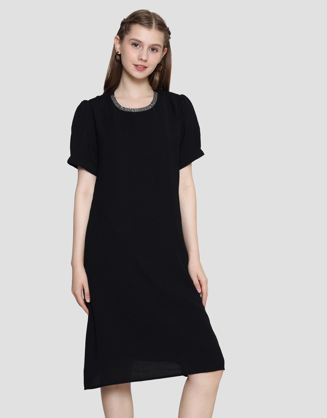 St. Yves Rhynestone Neckline Midi Dress Wanita
