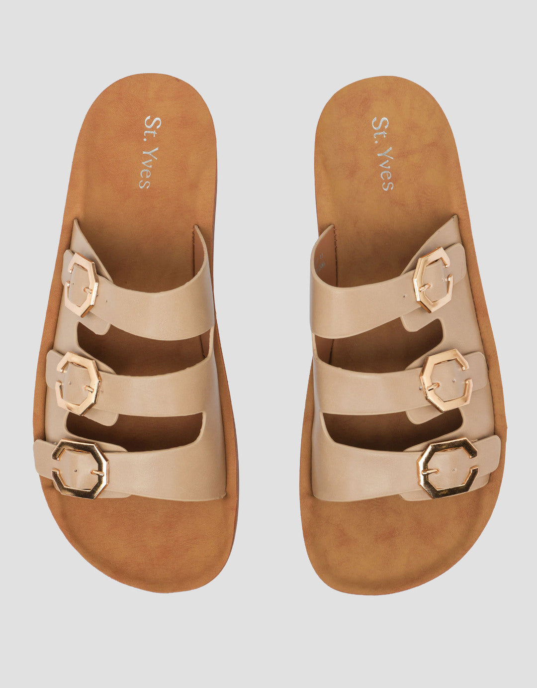 Sandal wanita dengan design slip on untuk menunjang penampilan Anda menjadi lebih menawan sehari-hari. Model yang up to date dan material yang ringan, akan menjadi pilihan Anda untuk setiap saat melakukan kegiatan.
