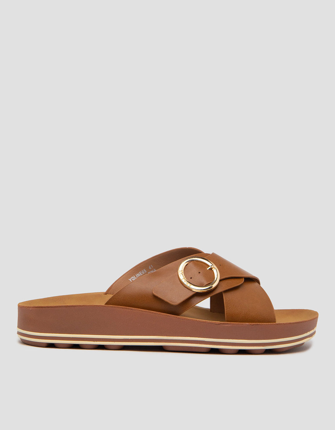 Sandal wanita dengan design slip on untuk menunjang penampilan Anda menjadi lebih menawan sehari-hari. Model yang up to date dan material yang ringan, akan menjadi pilihan Anda untuk setiap saat melakukan kegiatan.