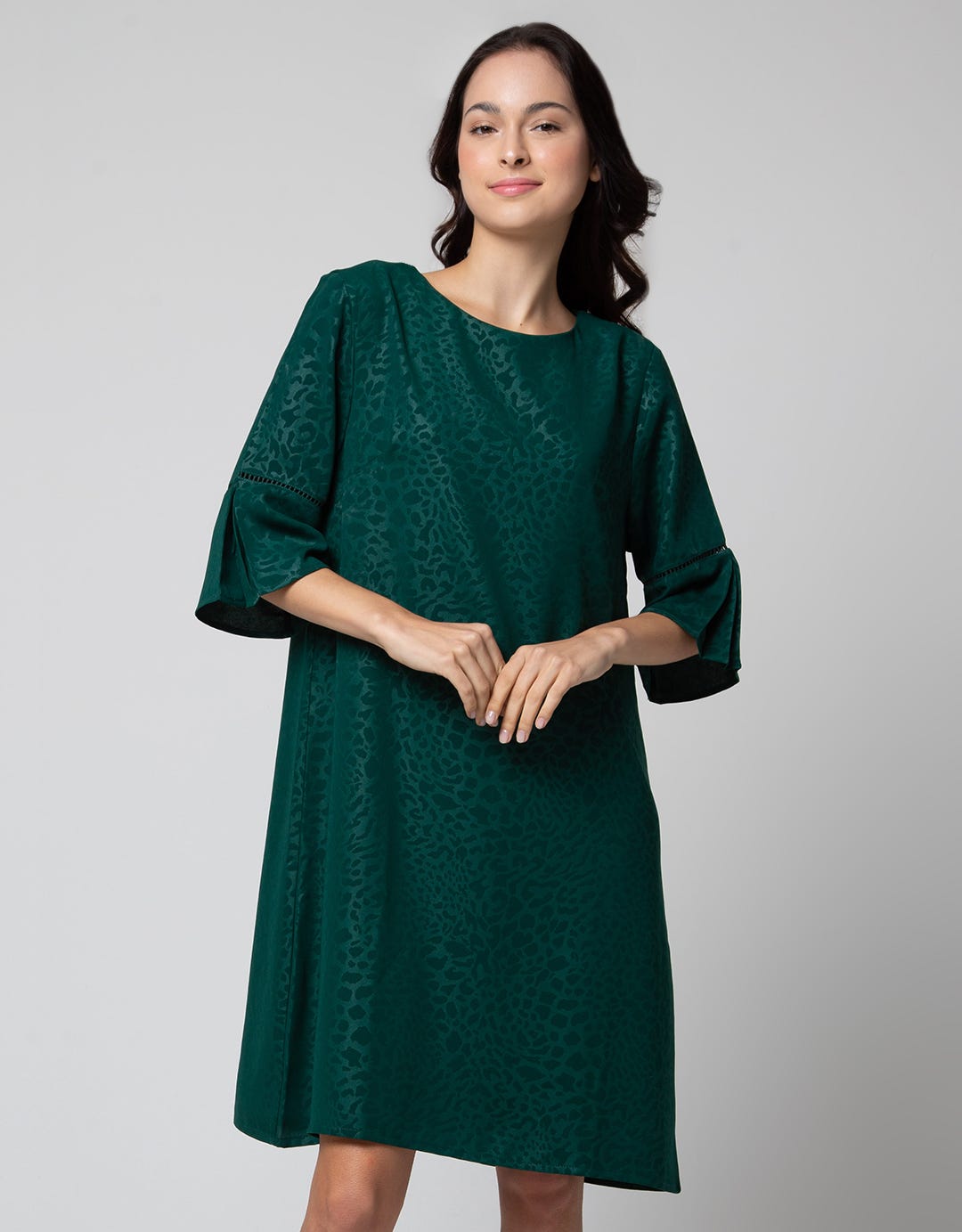 St.Yves Short Sleeve Midi Dress Laces With Emboss Fabric
