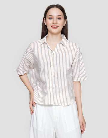 St. Yves Strip V Neck Collared Shirt Kemeja Wanita