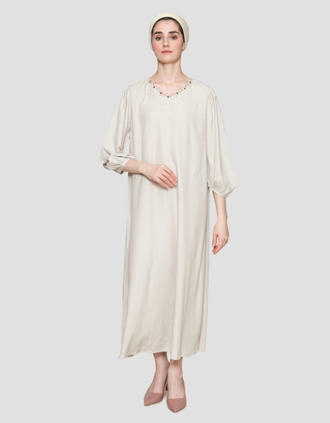St. Yves Texture With Beaded Neckline Maxi Dress Wanita