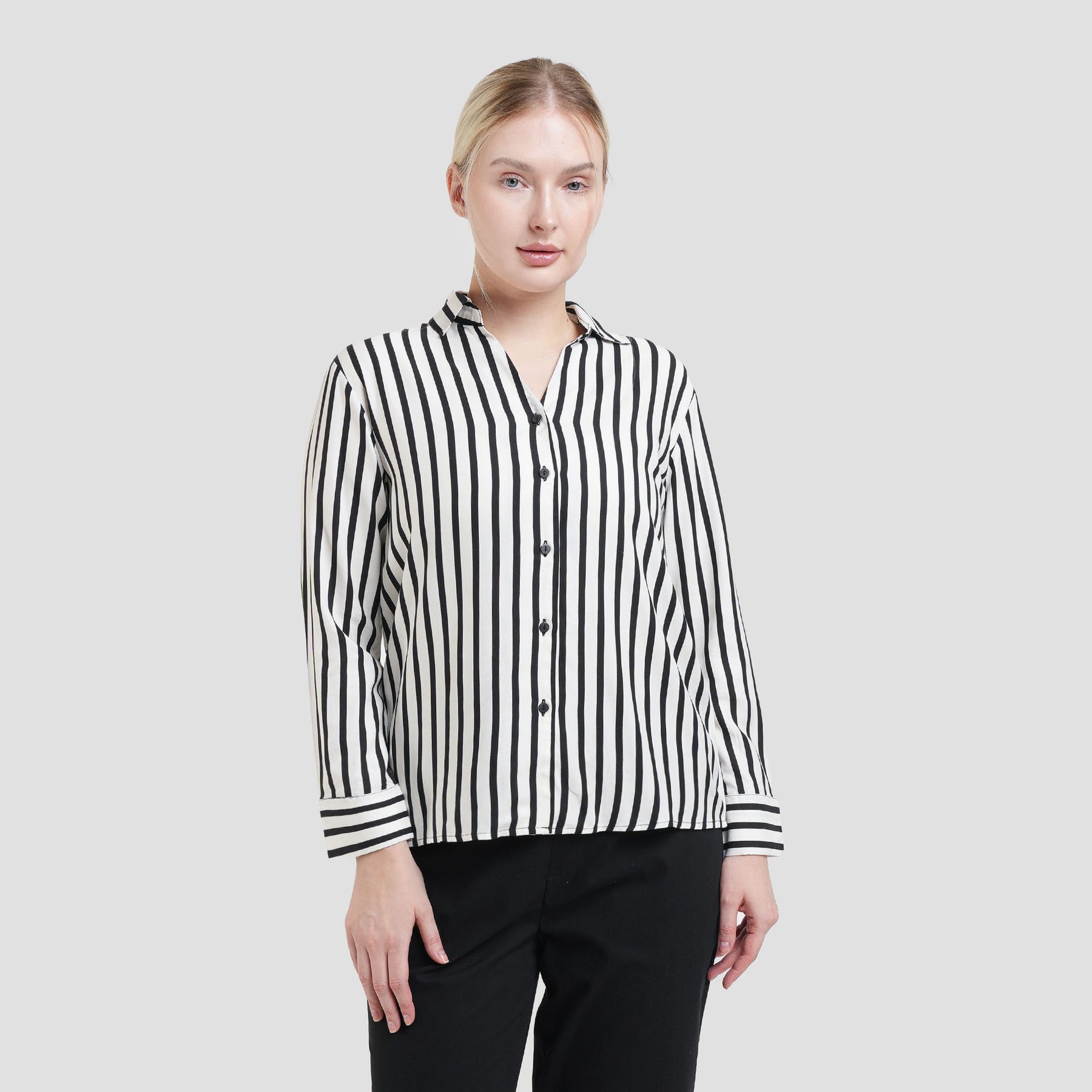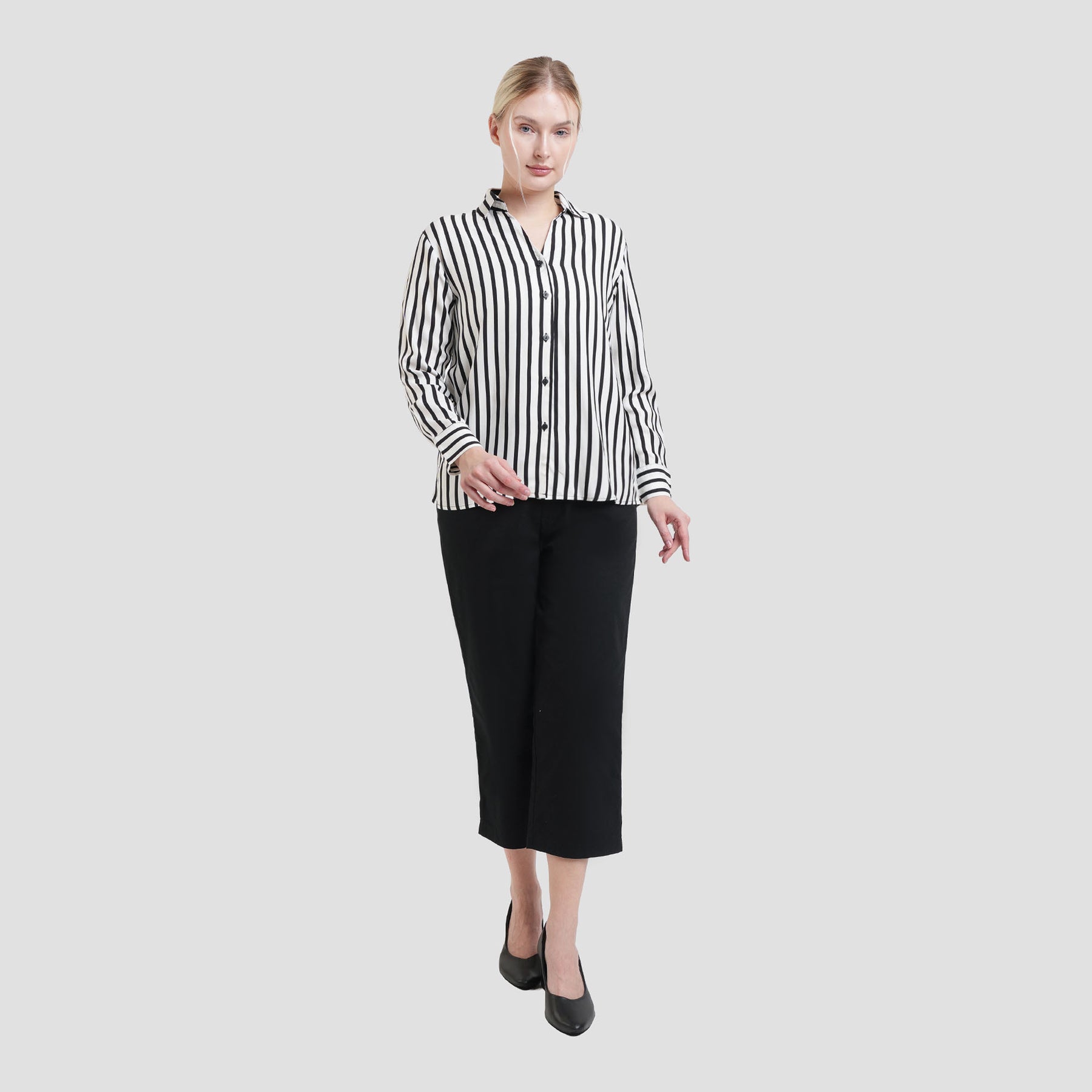 St. Yves Viscose Stripe V Neck Kemeja Wanita