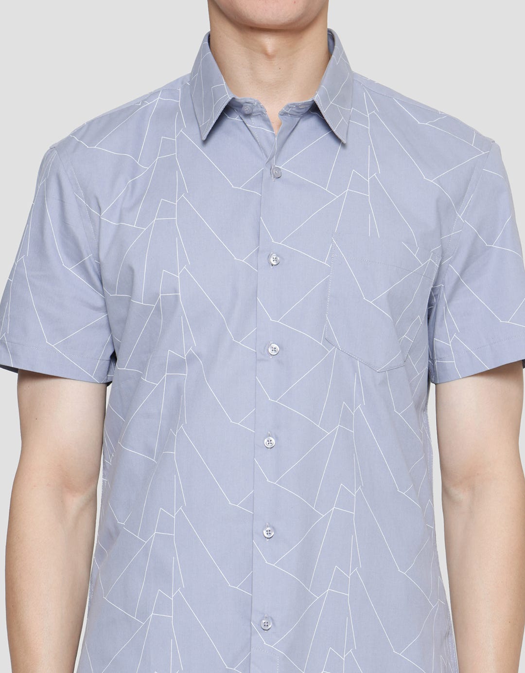 Stanley Adams Prints Slim Fit Kemeja Lengan Pendek Pria