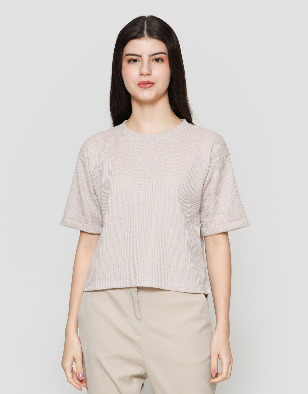 Suko Crop New Waffle Lengan Pendek Kaos Oversize Wanita