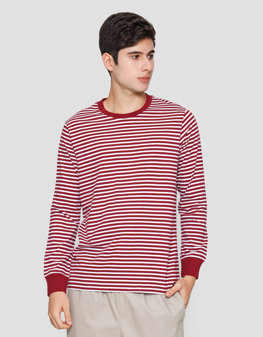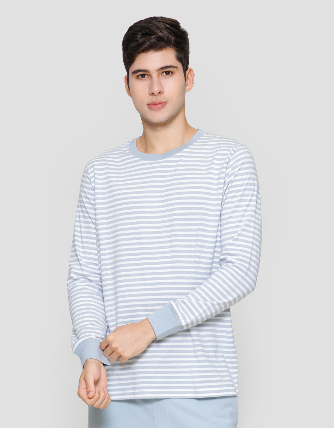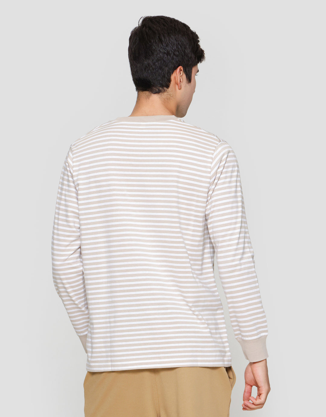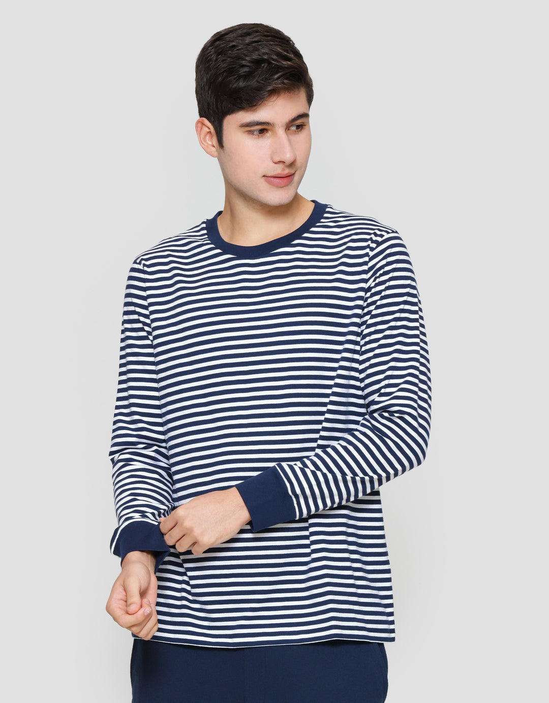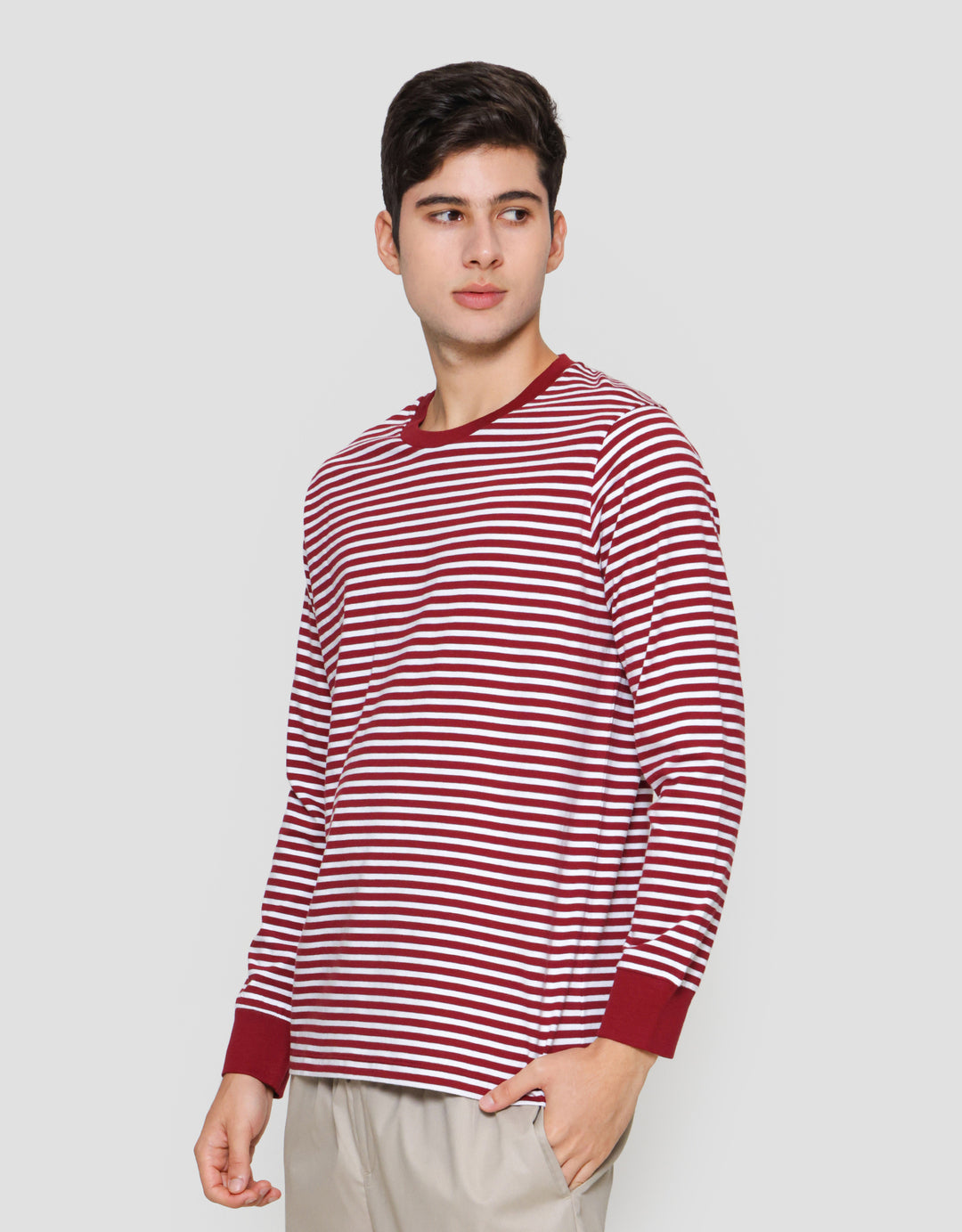 Suko Garis Kerah Bulat Kaos Lengan Panjang Pria