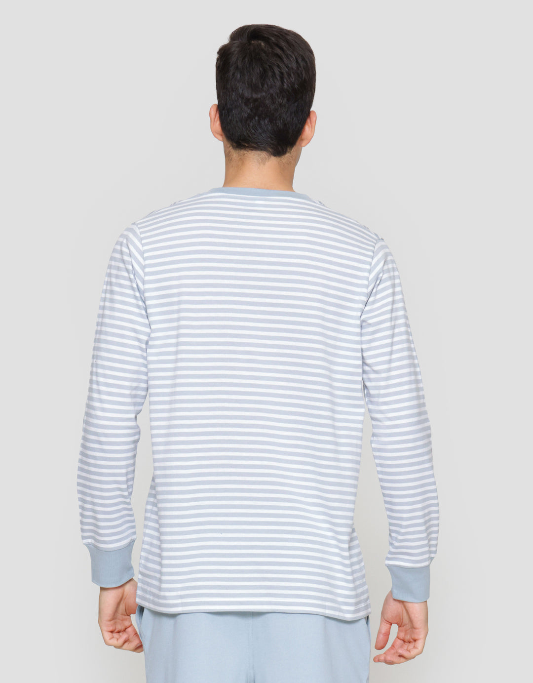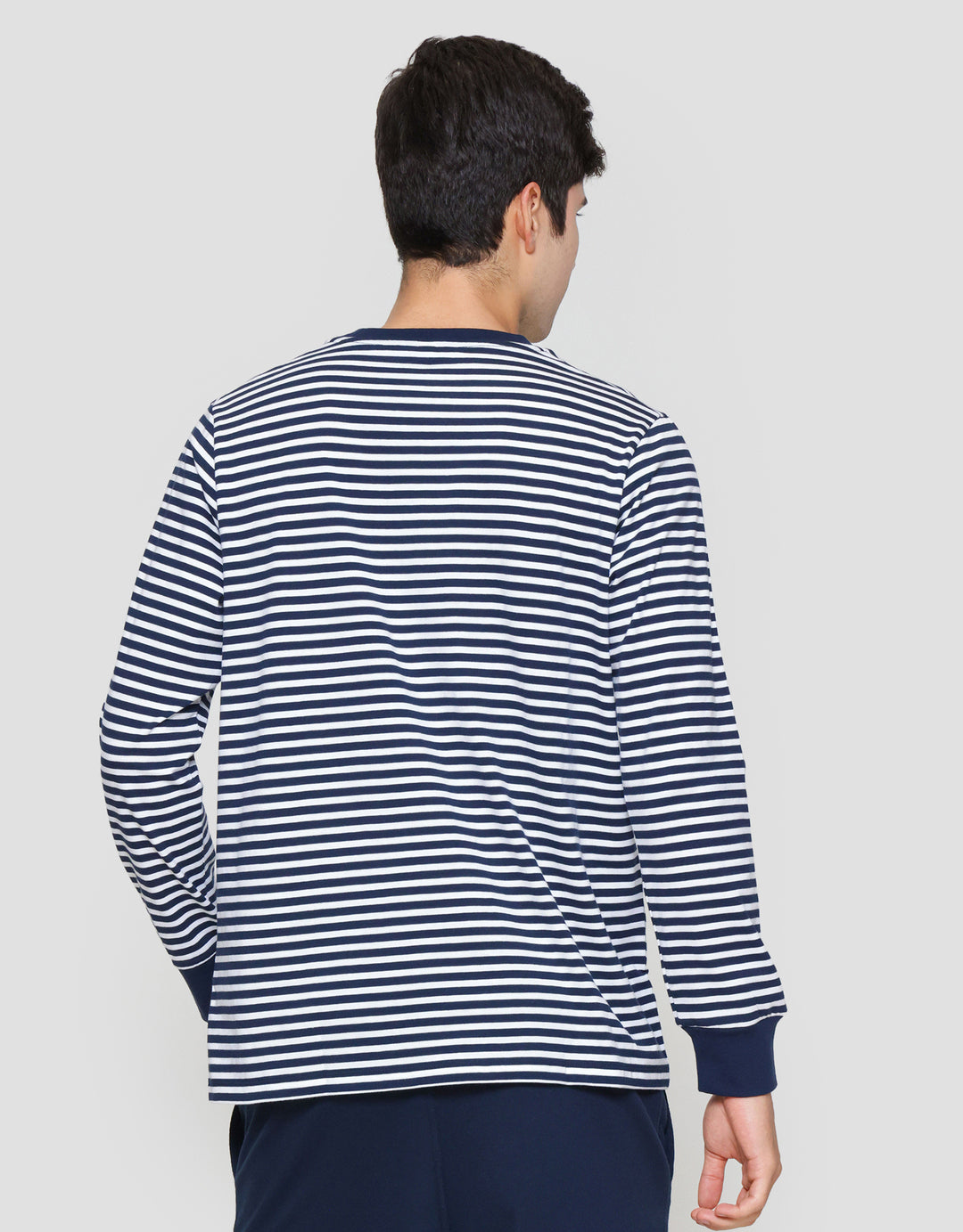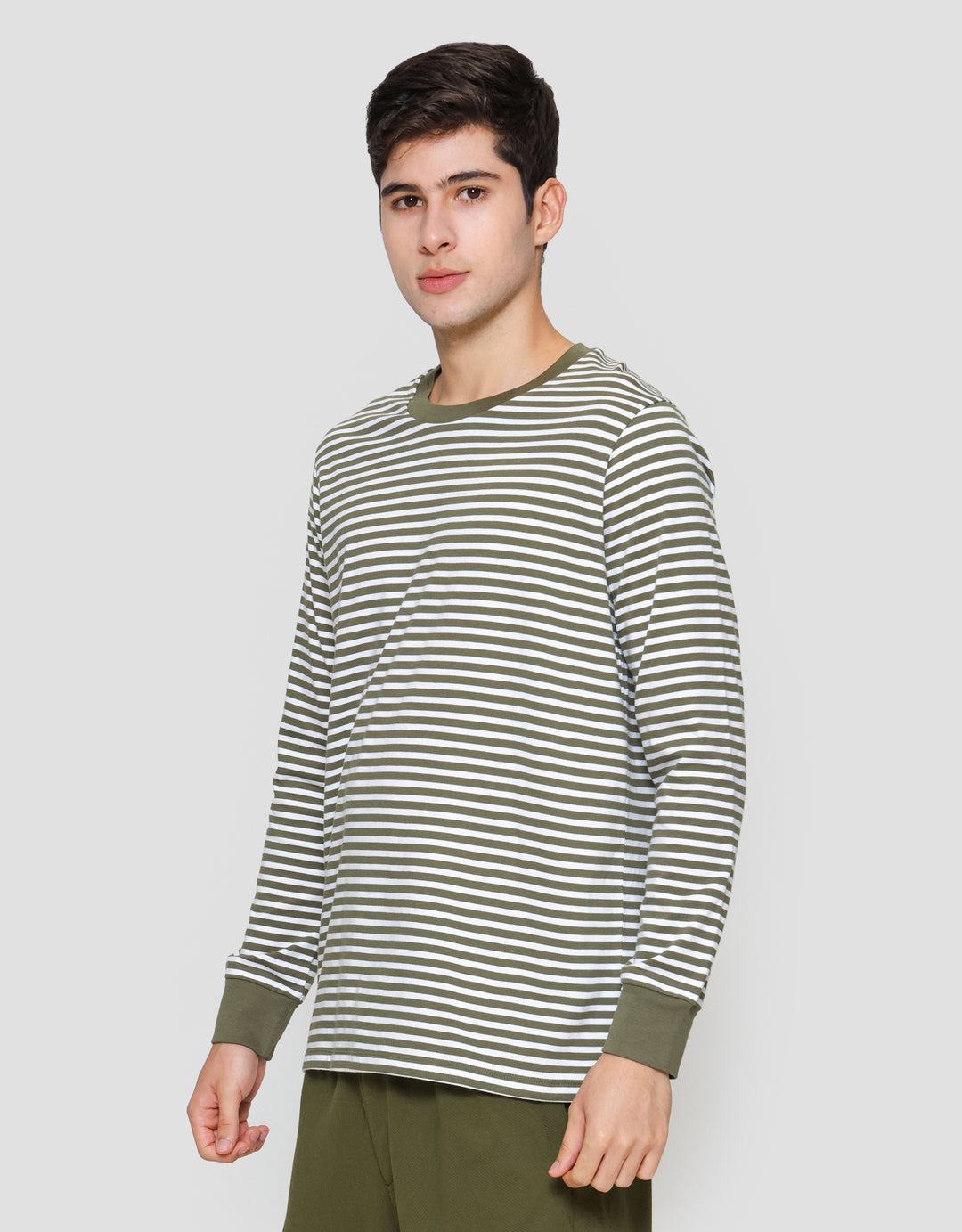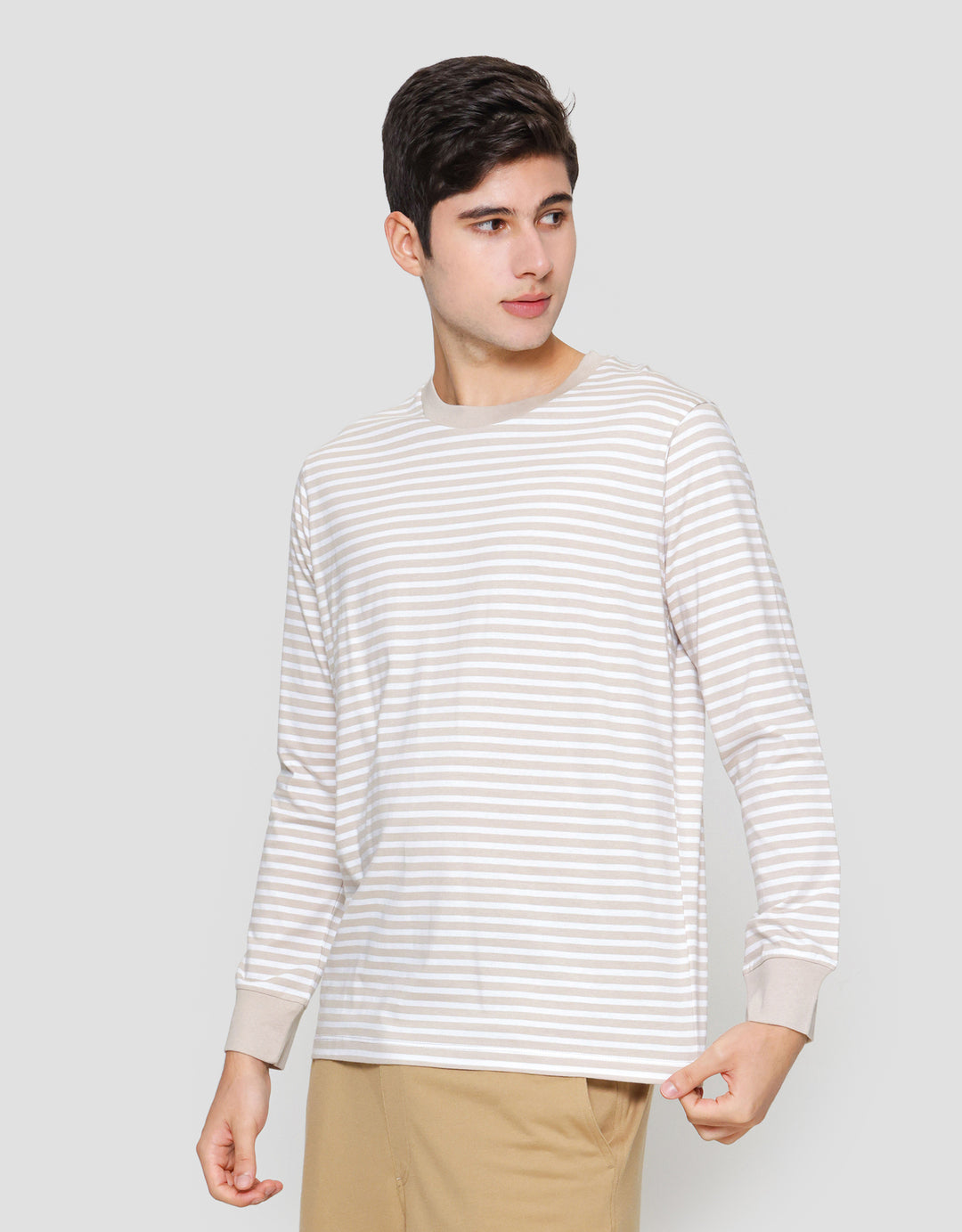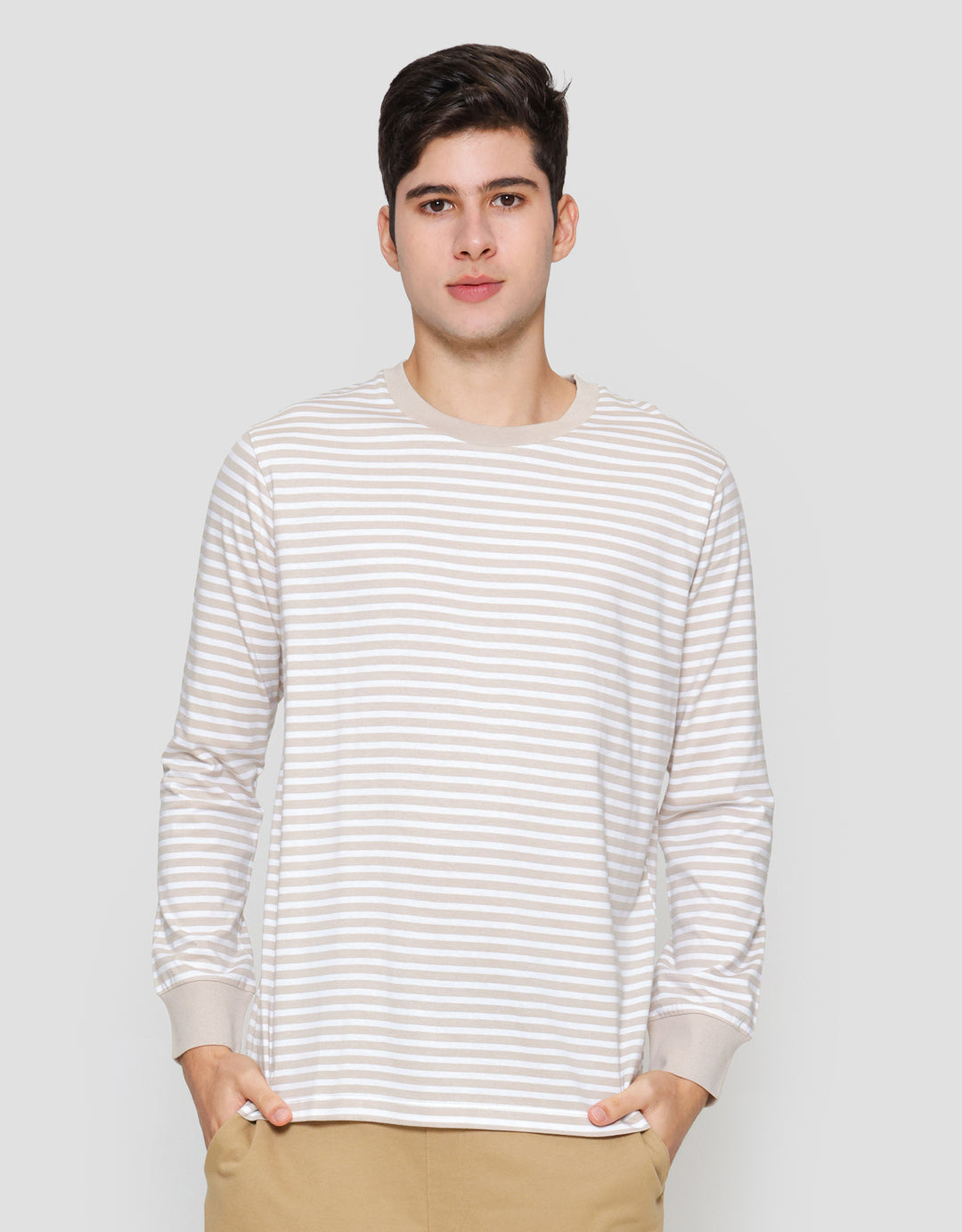 Suko Garis Kerah Bulat Kaos Lengan Panjang Pria