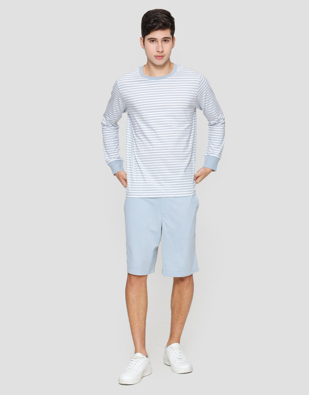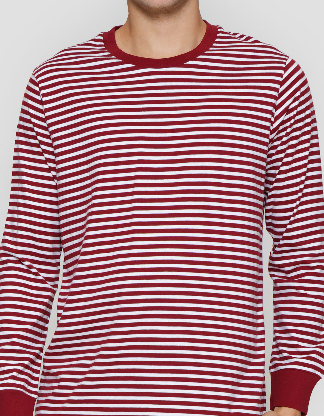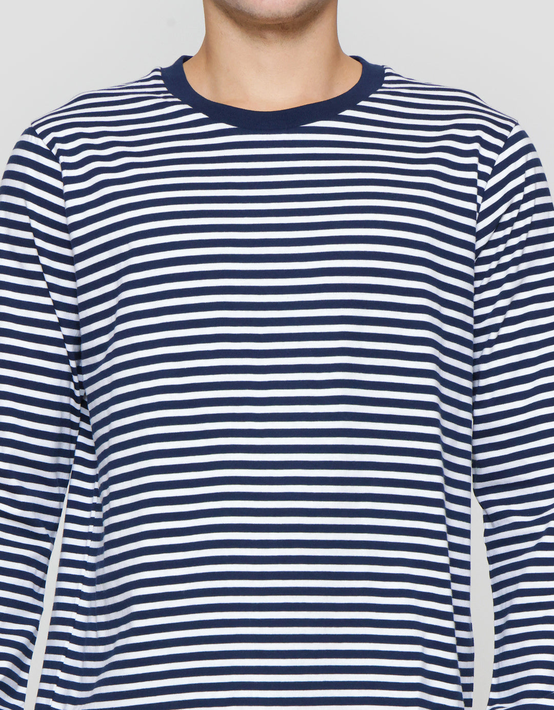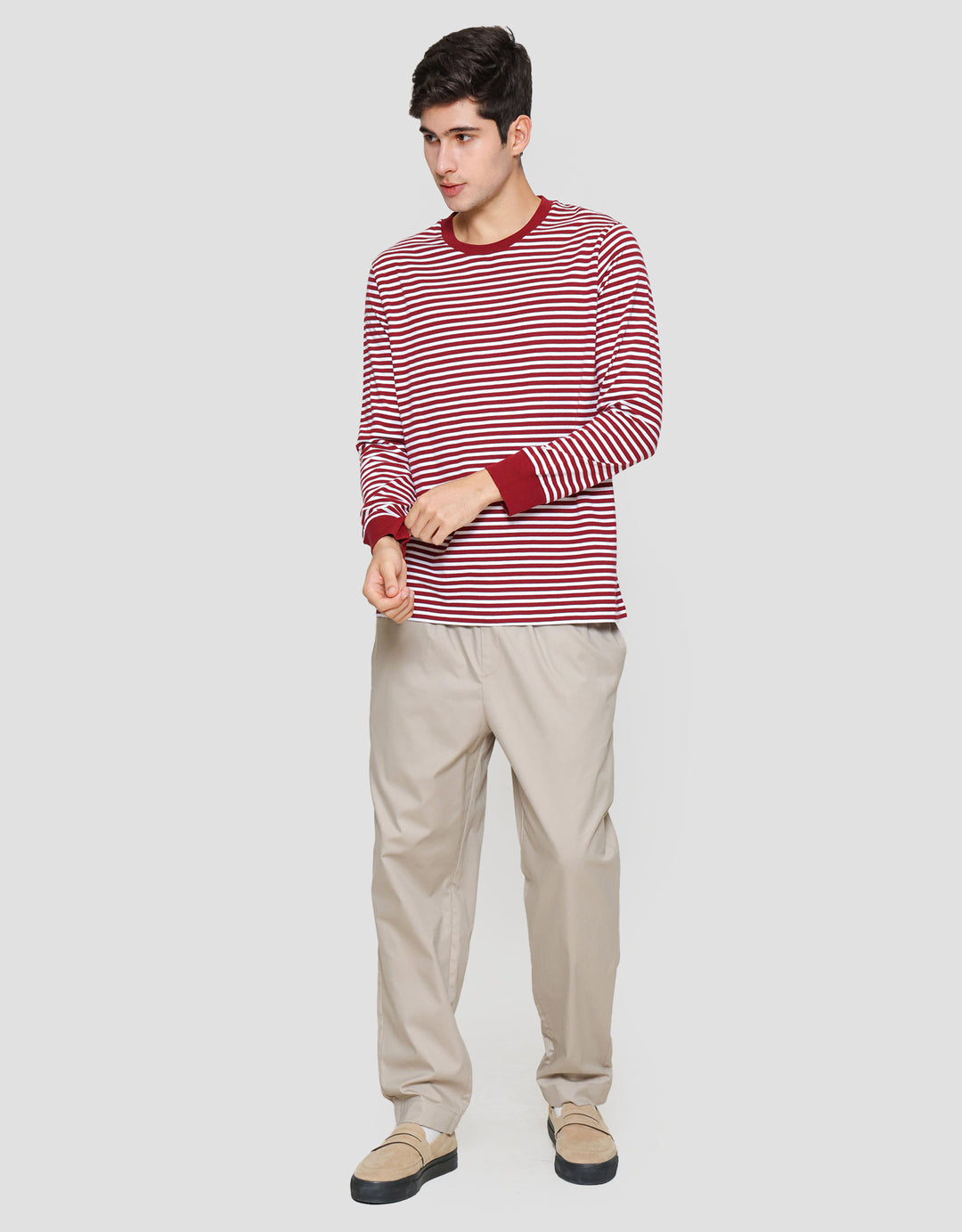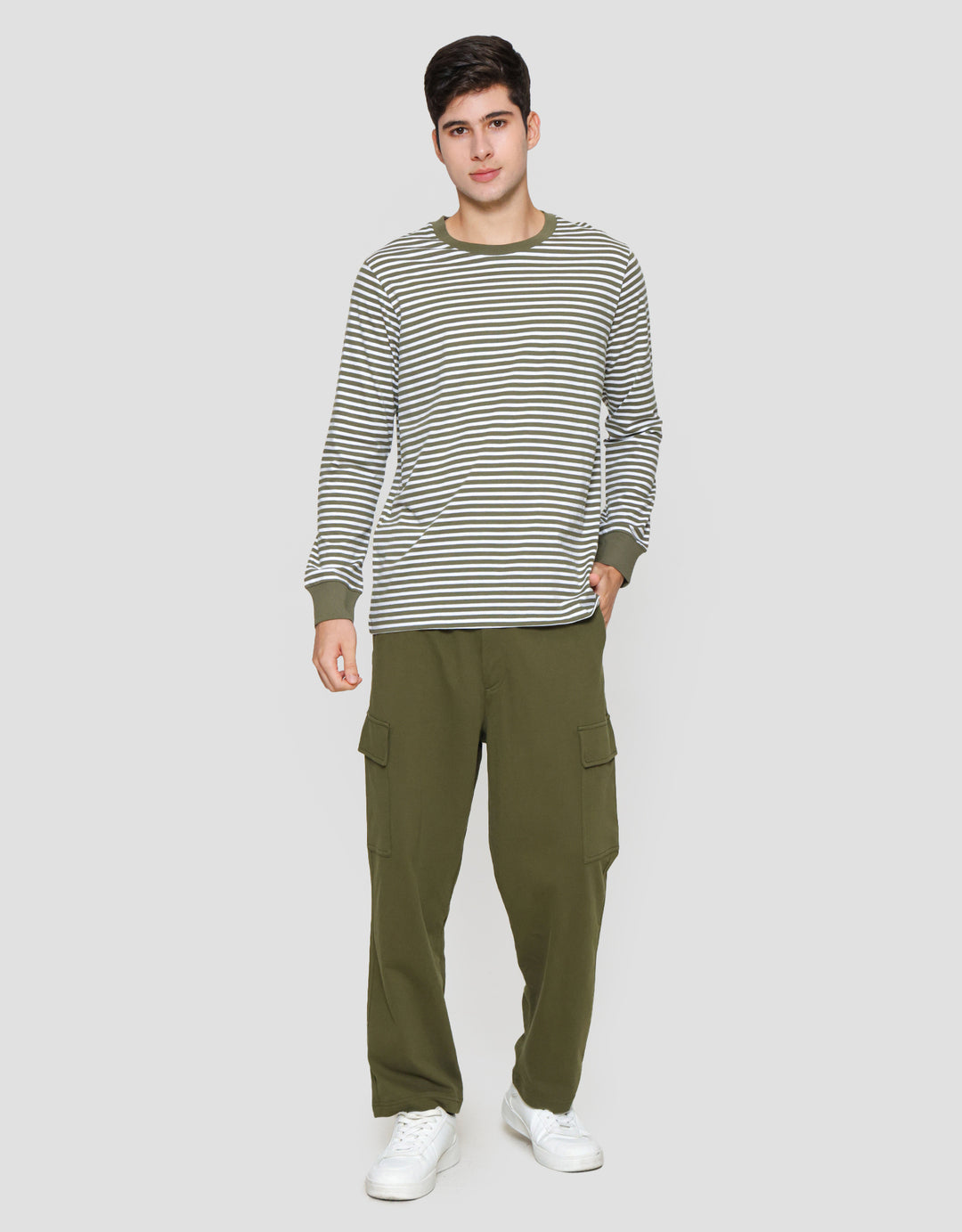 Suko Garis Kerah Bulat Kaos Lengan Panjang Pria