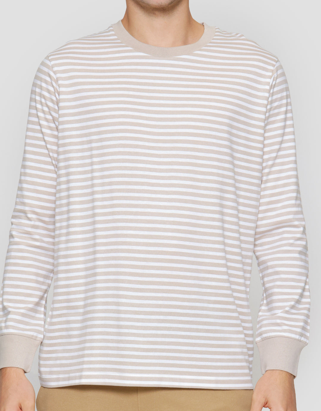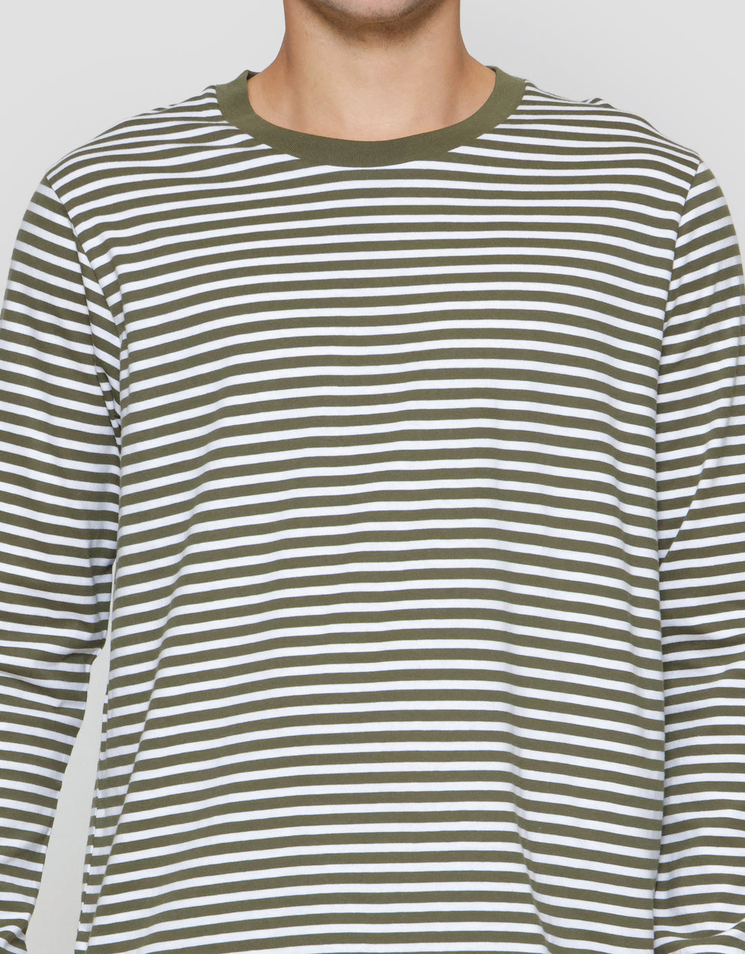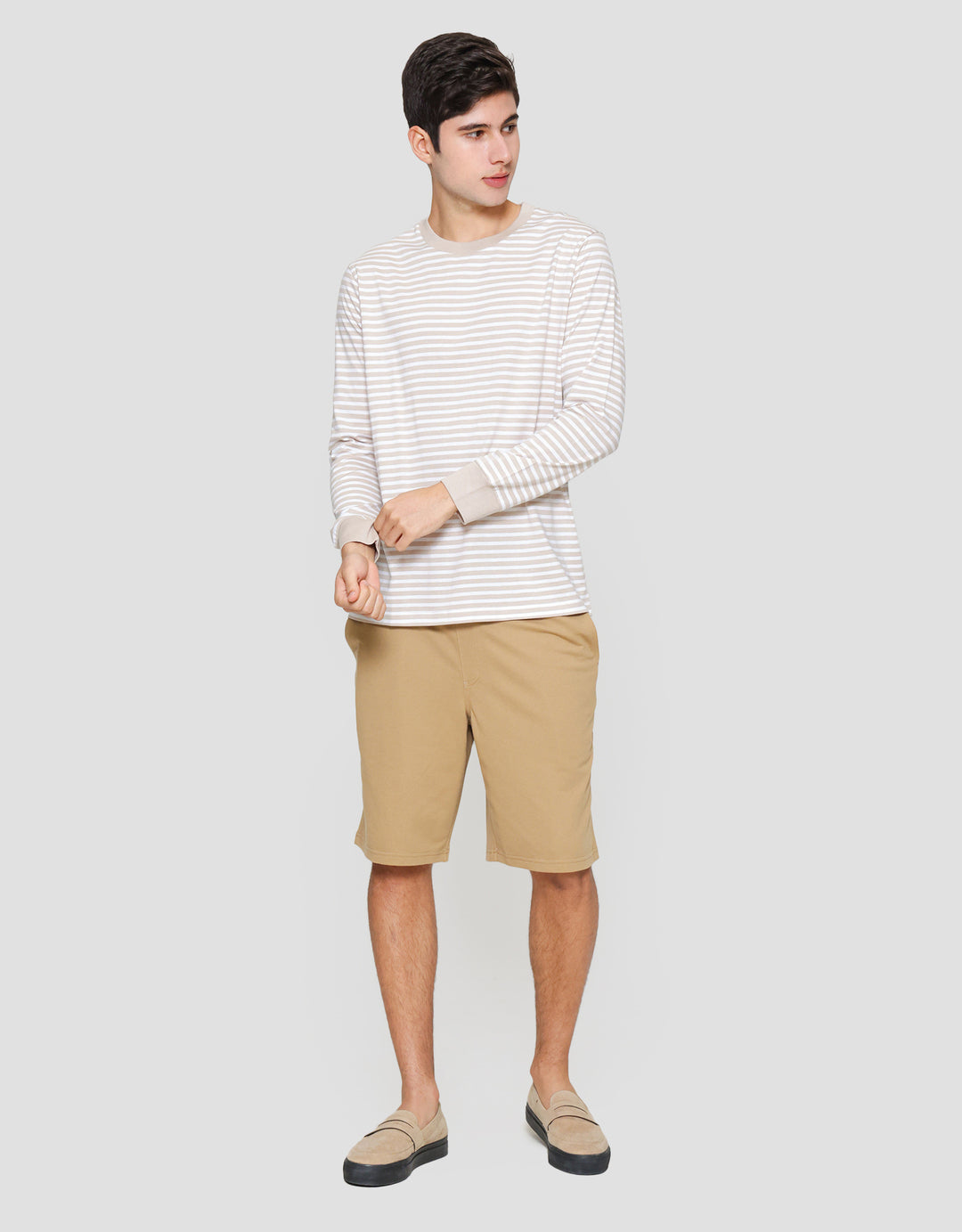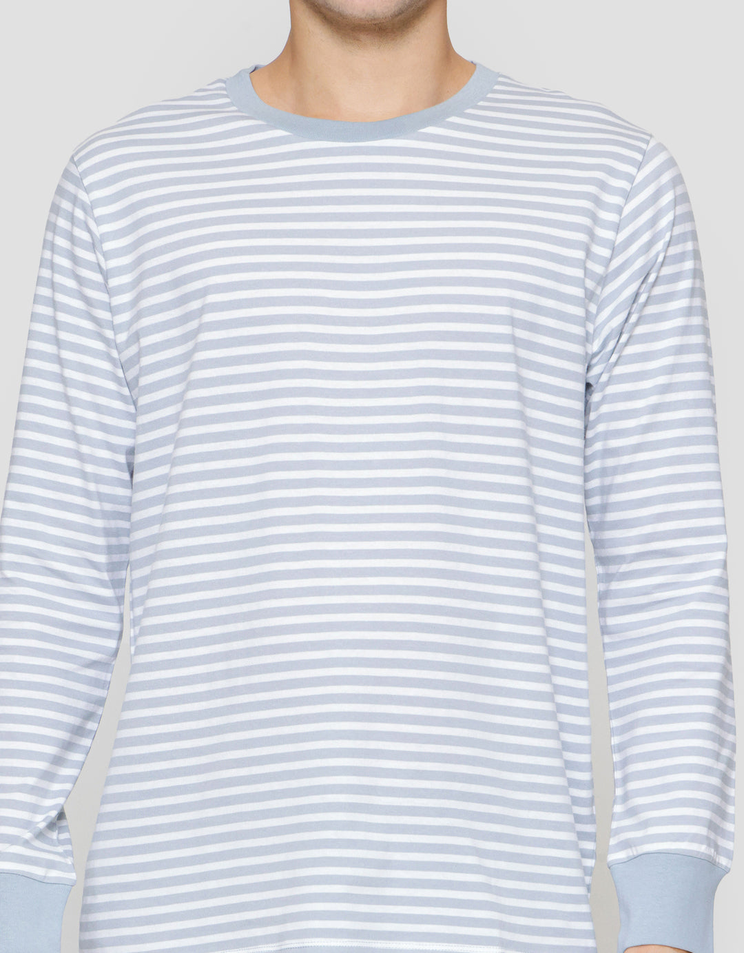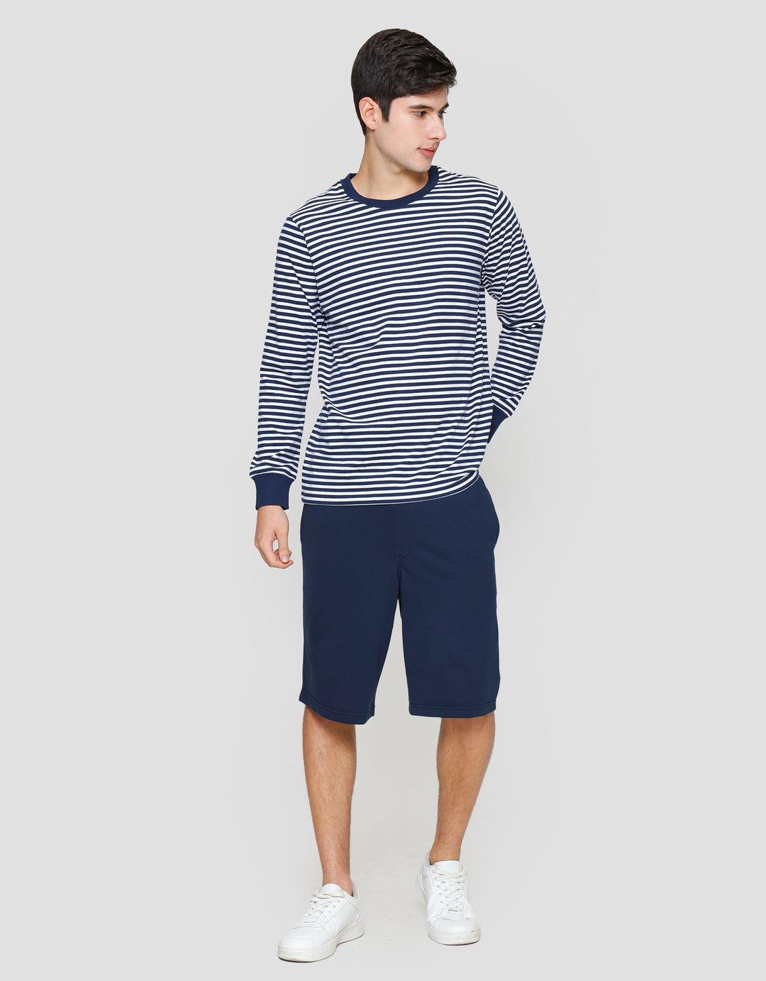 Suko Garis Kerah Bulat Kaos Lengan Panjang Pria