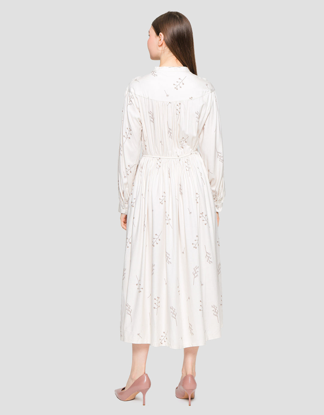 Suko Gaun Motif Printed Dress Lengan Panjang Wanita