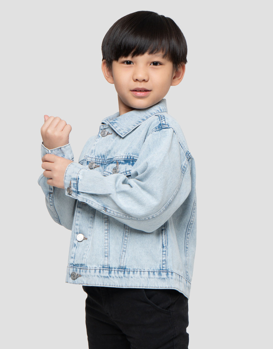 Si kecil ingin tampil sekeren Ayah? Jaket Denim Light Wash ini adalah jawabannya. Dirancang khusus untuk menunjang gaya kasual anak, jaket ini sangat cocok digunakan untuk jalan-jalan ke mall, acara santai, maupun sebagai outer saat cuaca sejuk.