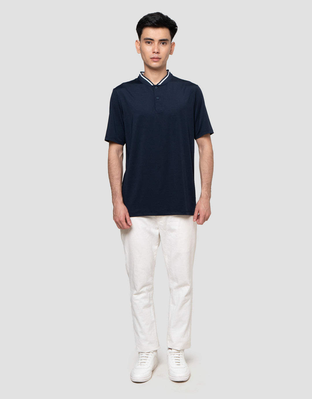 Suko Kerah Tegak Lengan Pendek Kaos Polo Pria