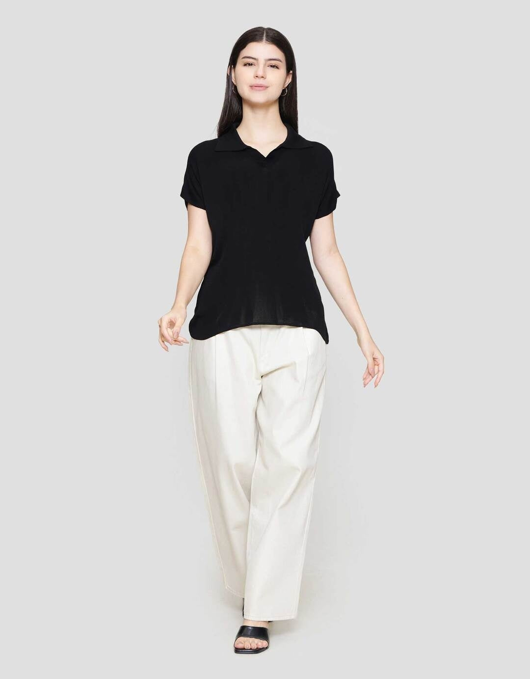 Suko Knit Top Rajut Cap Sleeve Collar Lengan Pendek Blouse Wanita