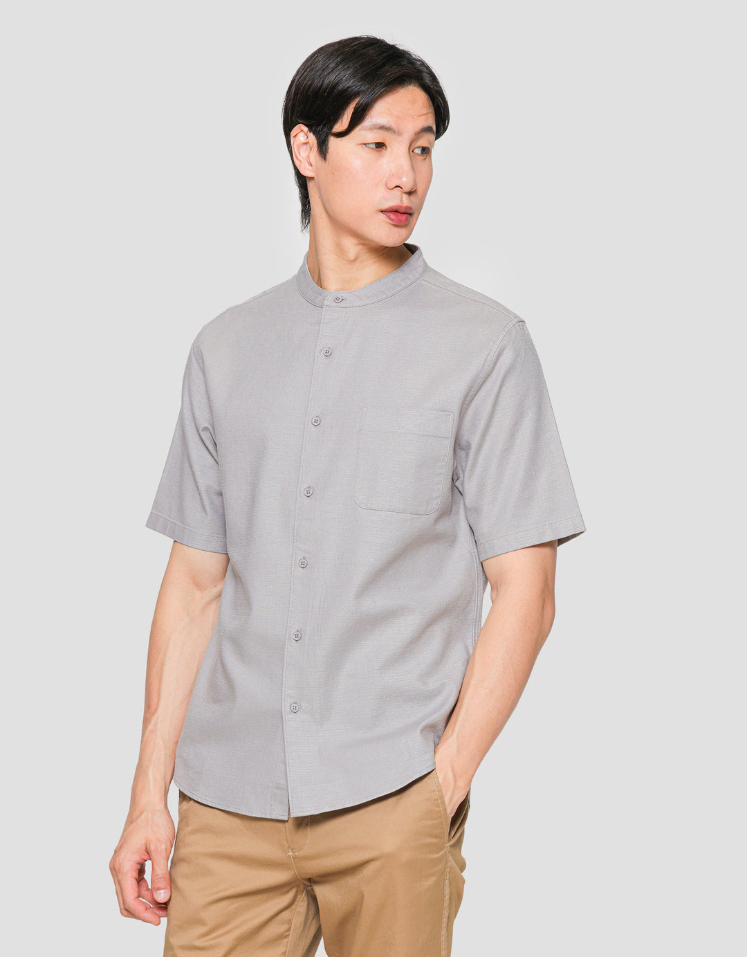 Suko Mandarin Collar Linen Sheer Kerah Tegak Kemeja Pria