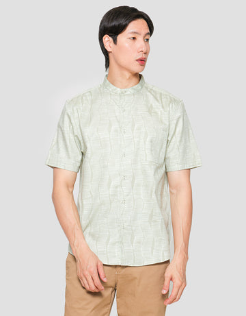 Suko Motif Mandarin Collar Printed Kemeja Lengan Pendek Pria