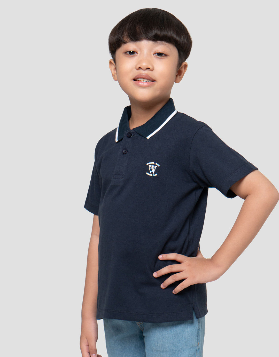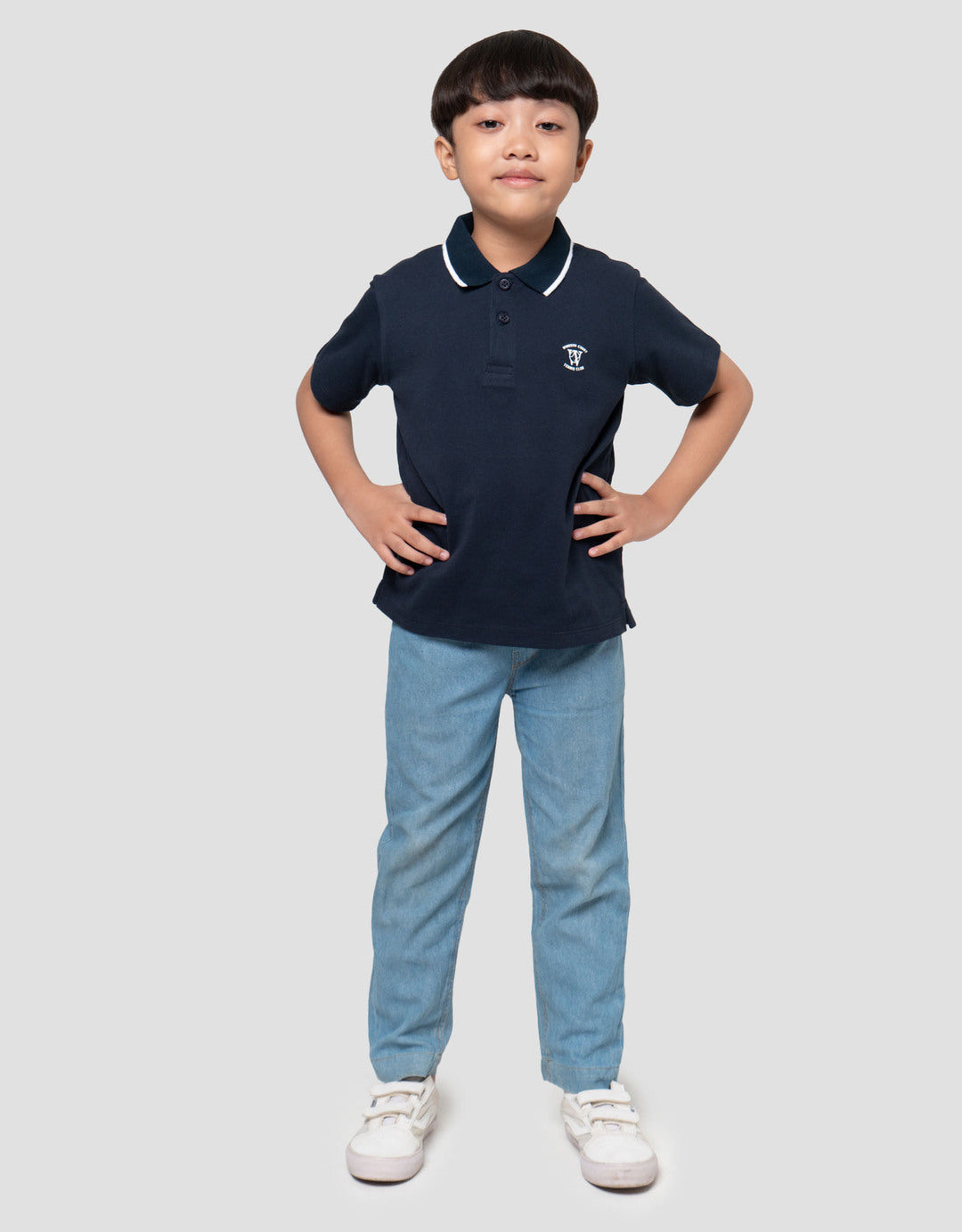 Kaos polo anak laki-laki dengan design yang simple dan casual, cocok untuk digunakan anak pada moment keseharian mereka untuk menunjang penampilan anak menjadi lebih menawan.