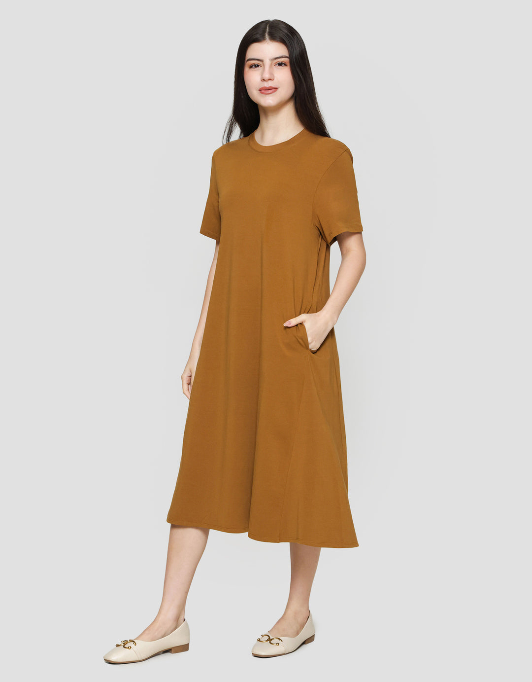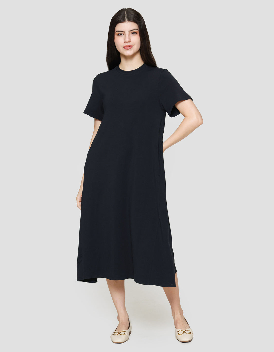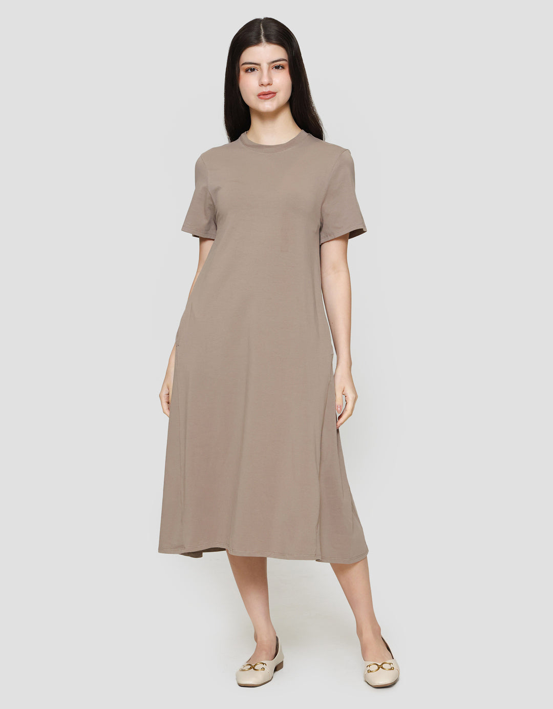Suko Knit Dress Plain Gaun Jersey Wanita