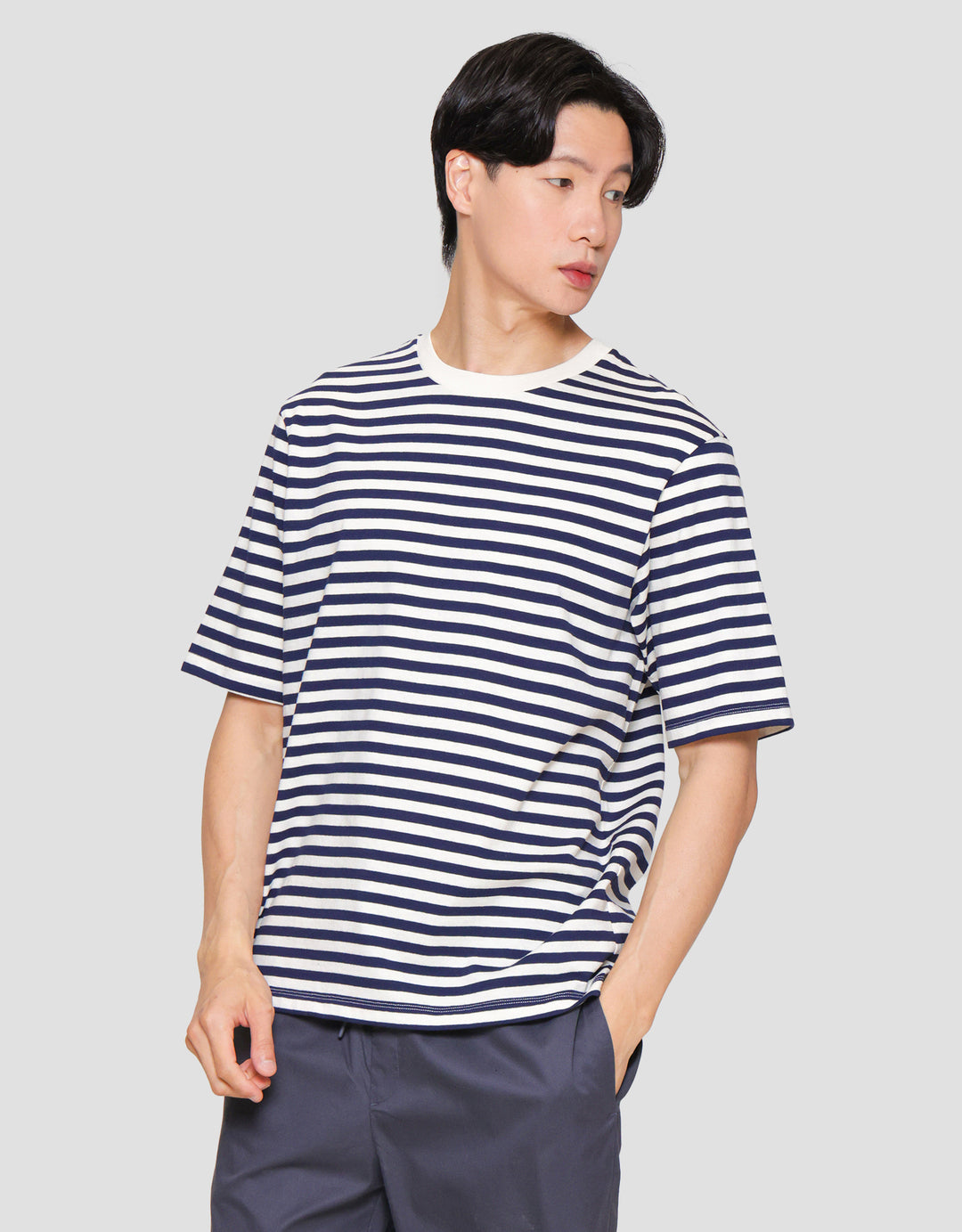 Suko Oversized Ss Striped Tee Print Kerah Bulat Kaos Lengan Pendek Pria