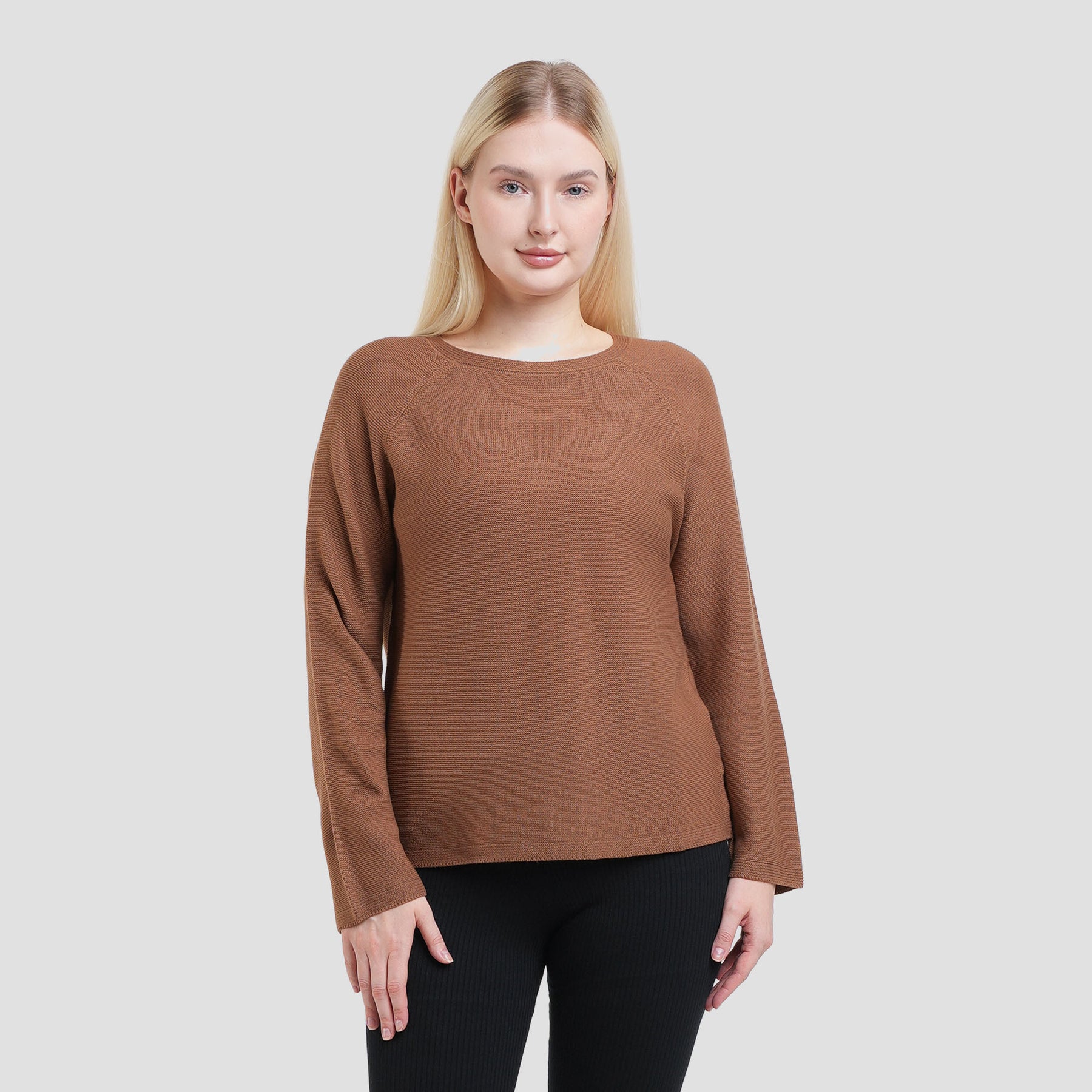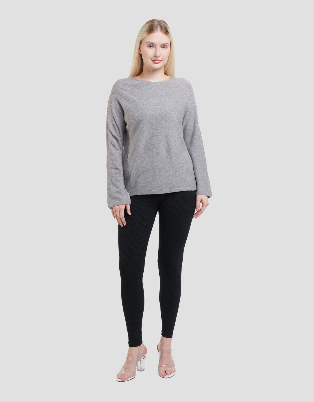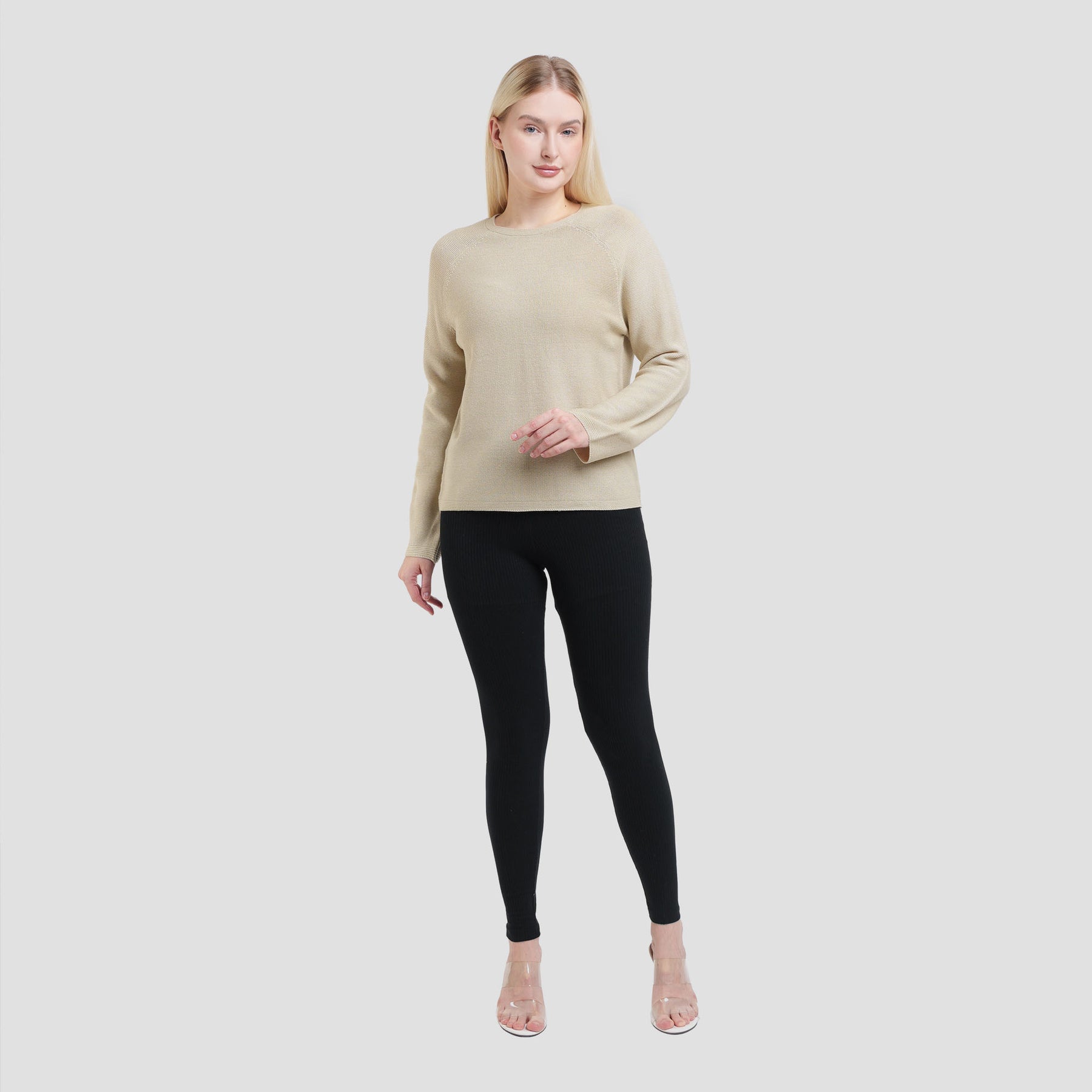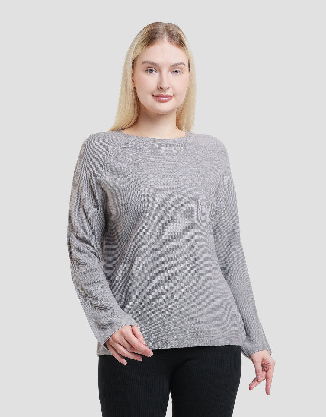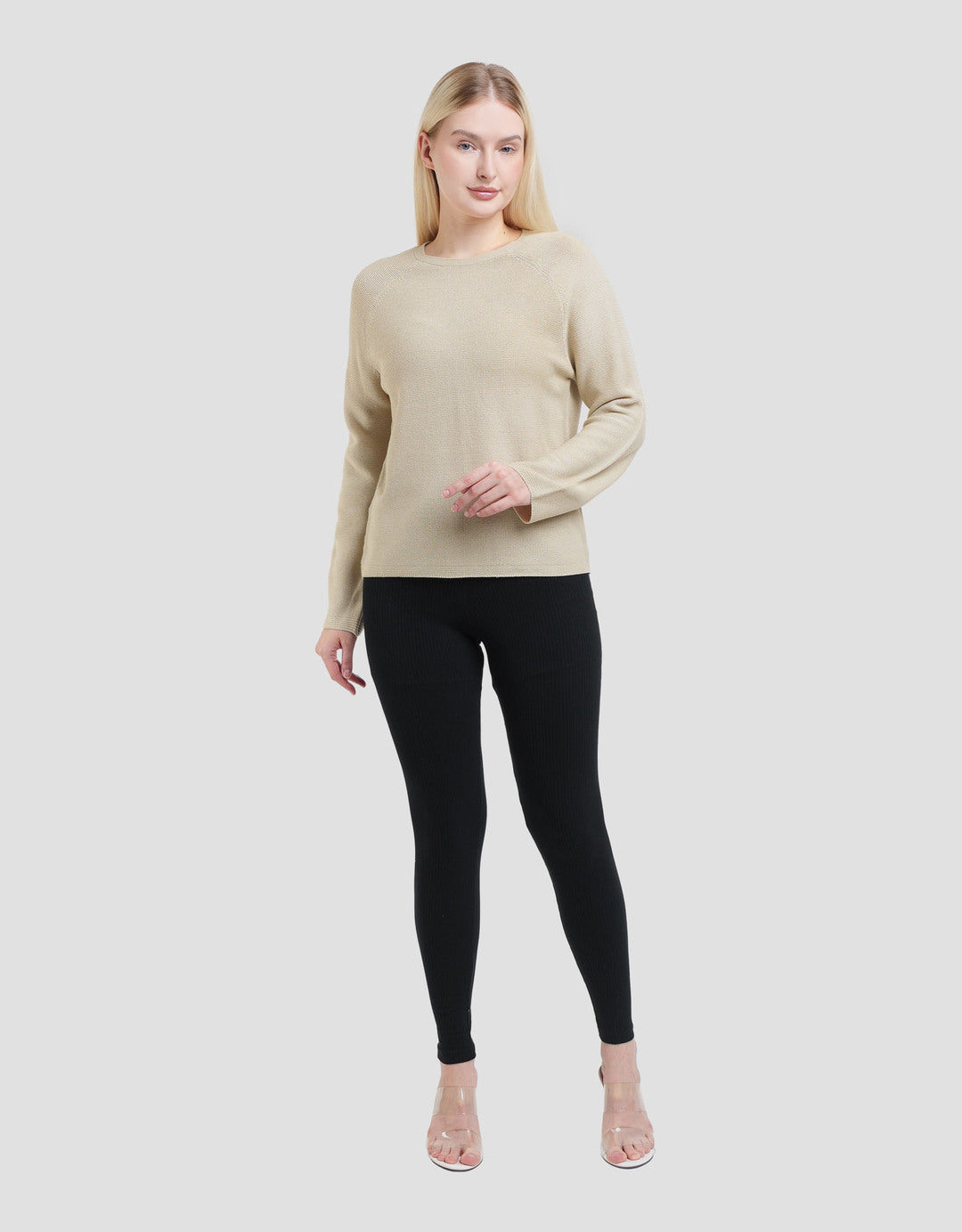 Suko Top Rajut Kerah Bulat Kaos Lengan Panjang Wanita