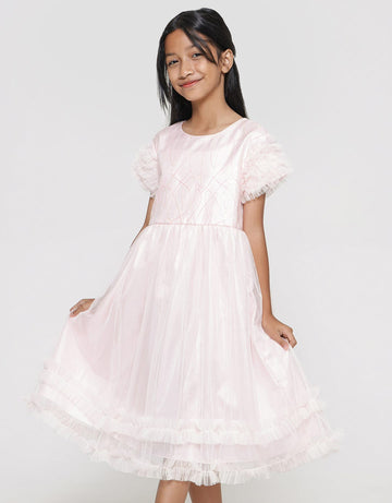 Sweet Miss Mote Tangan Kerut Dress Anak Perempuan
