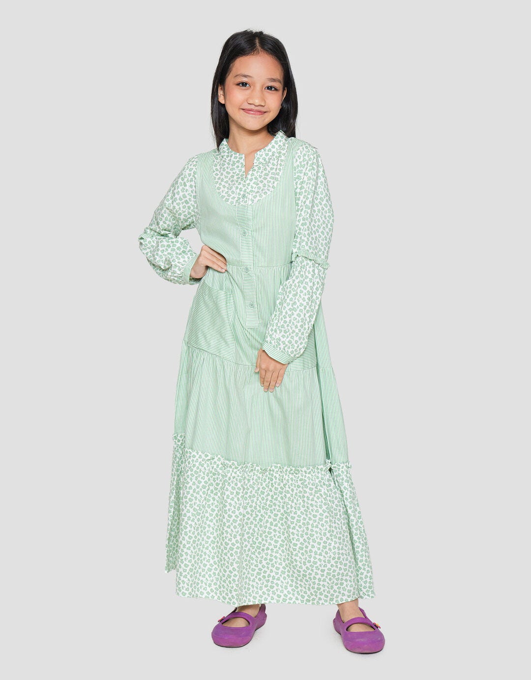 Dress modest untuk sang buat hati dalam melengkapi penampilan mereka pada moment penting saat pesta atau bepergian. Model formal yang cantik, akan menunjang penampilan anak menjadi semakin menawan. Bahan yang berkualitas akan nyaman saat digunakan sepanjang hari.