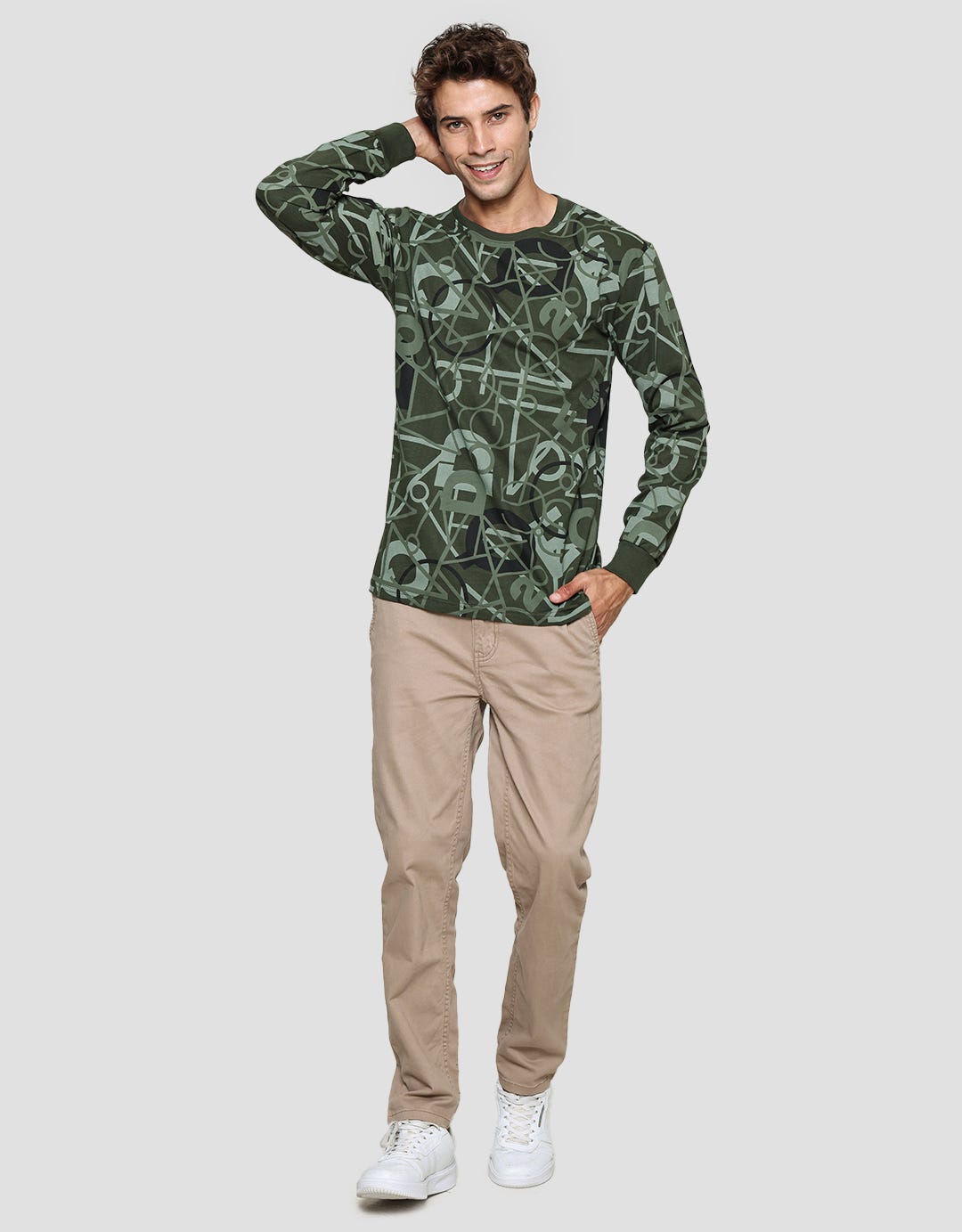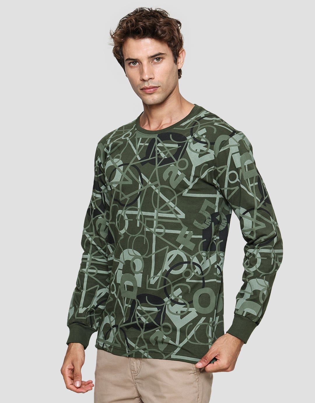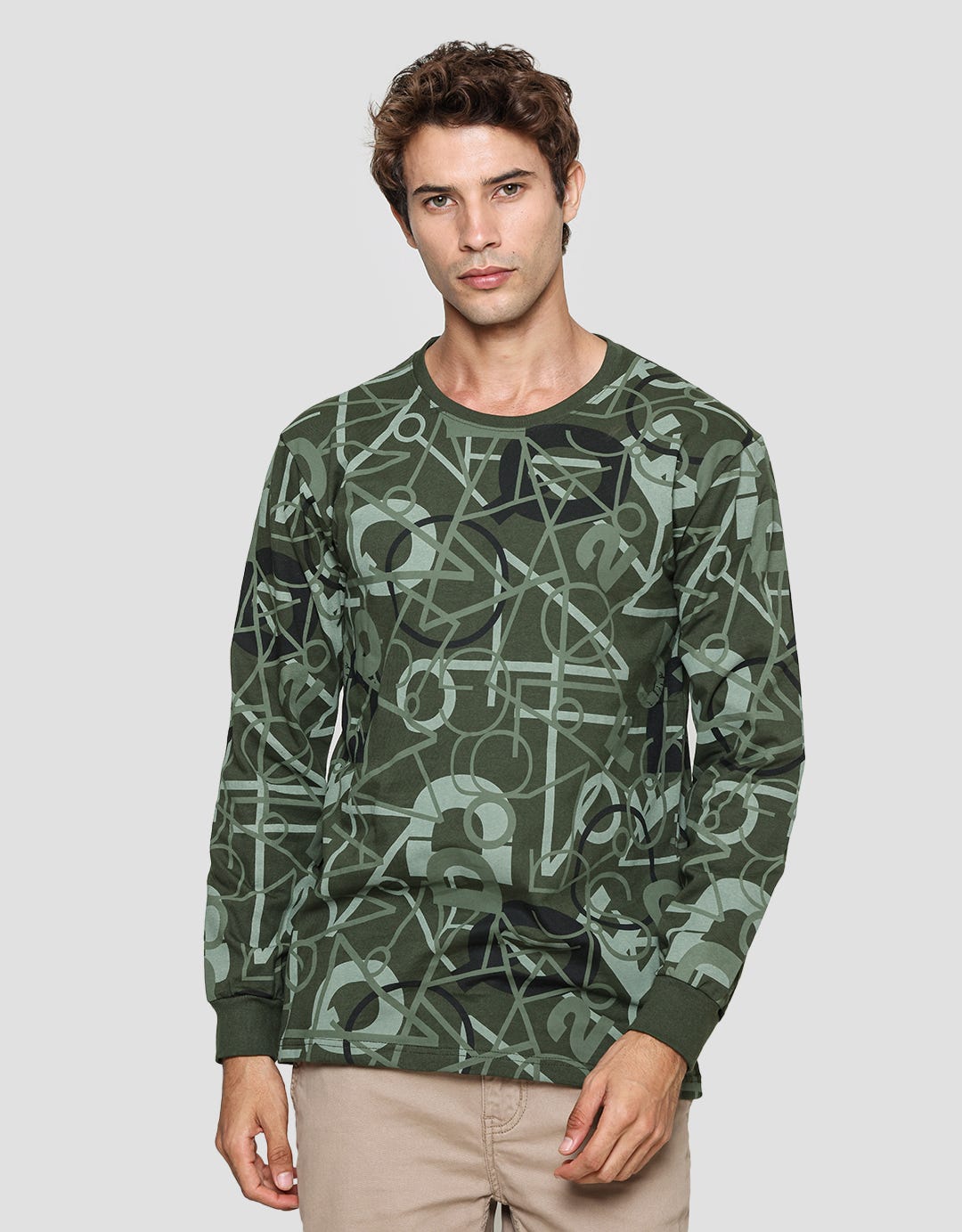 T Zone Kaos Lengan Panjang Pria Fullprint Theme Line Drawing