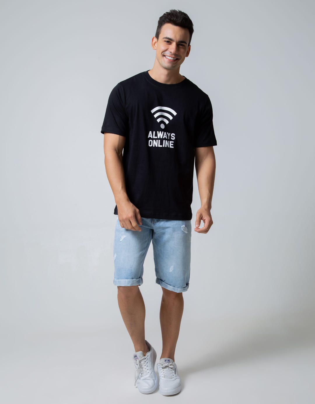 T Zone Short Sleeve T-Shirt Big Size Print Visual Always Online