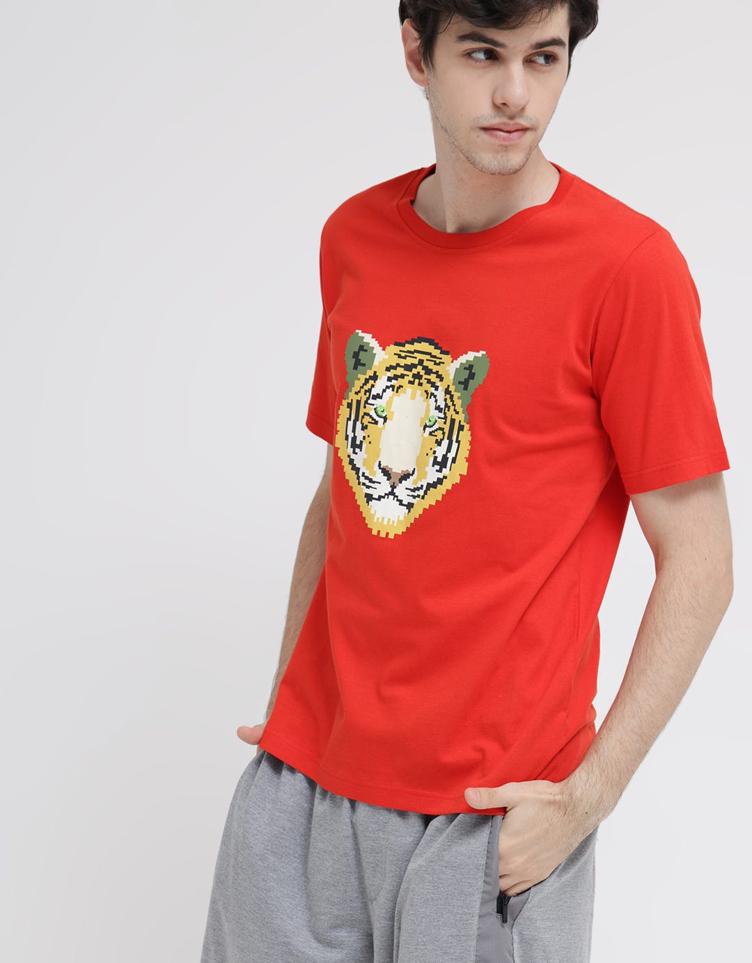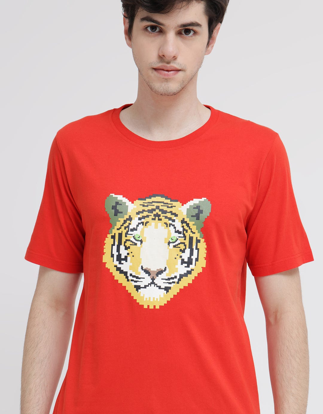 T Zone Short Sleeve T-Shirt Print Theme Pixel Art - Tiger