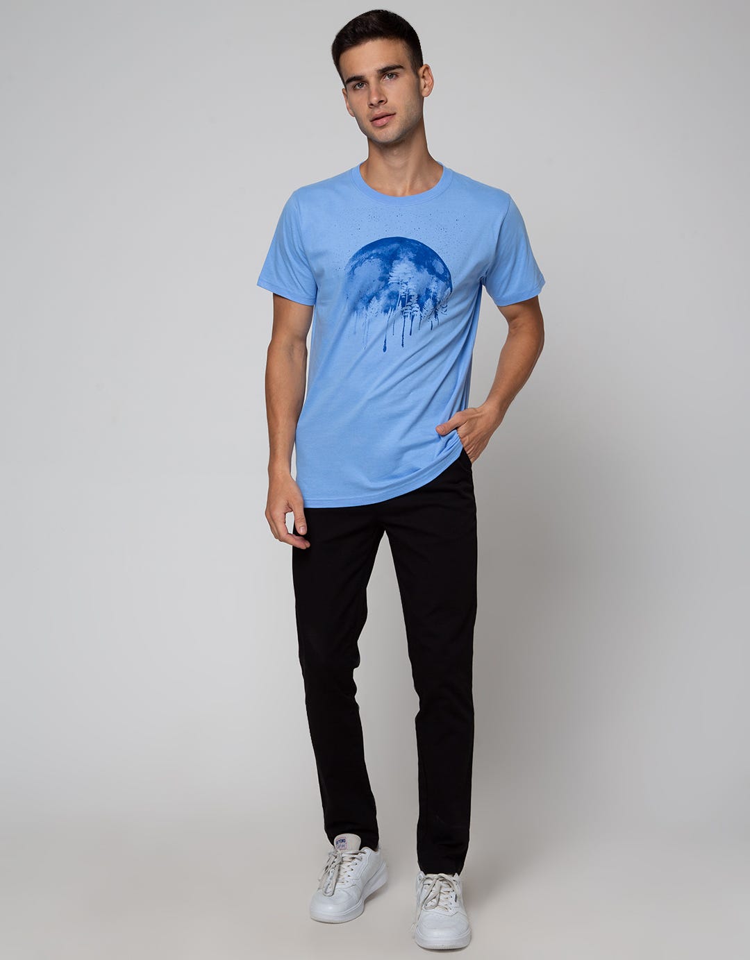 Kaos pria dengan design casual dan simple, akan cocok untuk dijadikan outfit keseharian saat beraktifitas santai. Bahan yang berkualitas akan nyaman saat digunakan sepanjang hari.