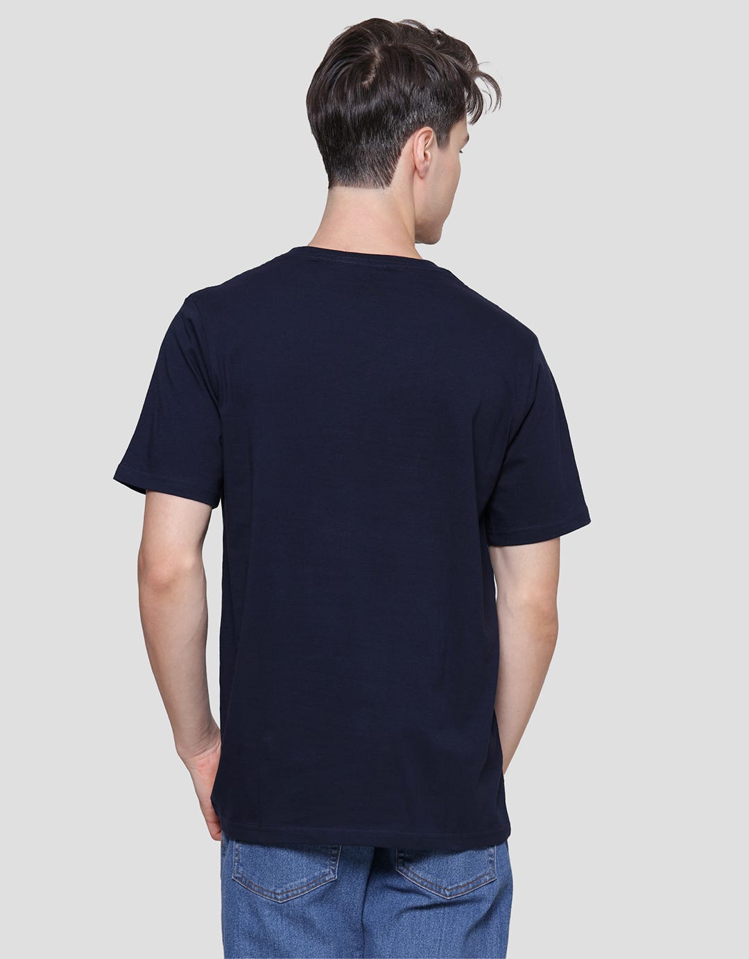 - Detail kerah bulat, lengan pendek