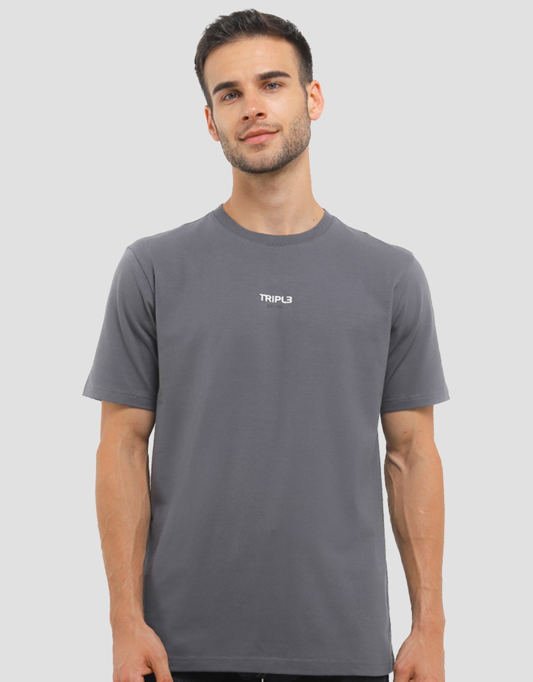 Triple YTS.130.GRY Logo Brand Kaos Pria