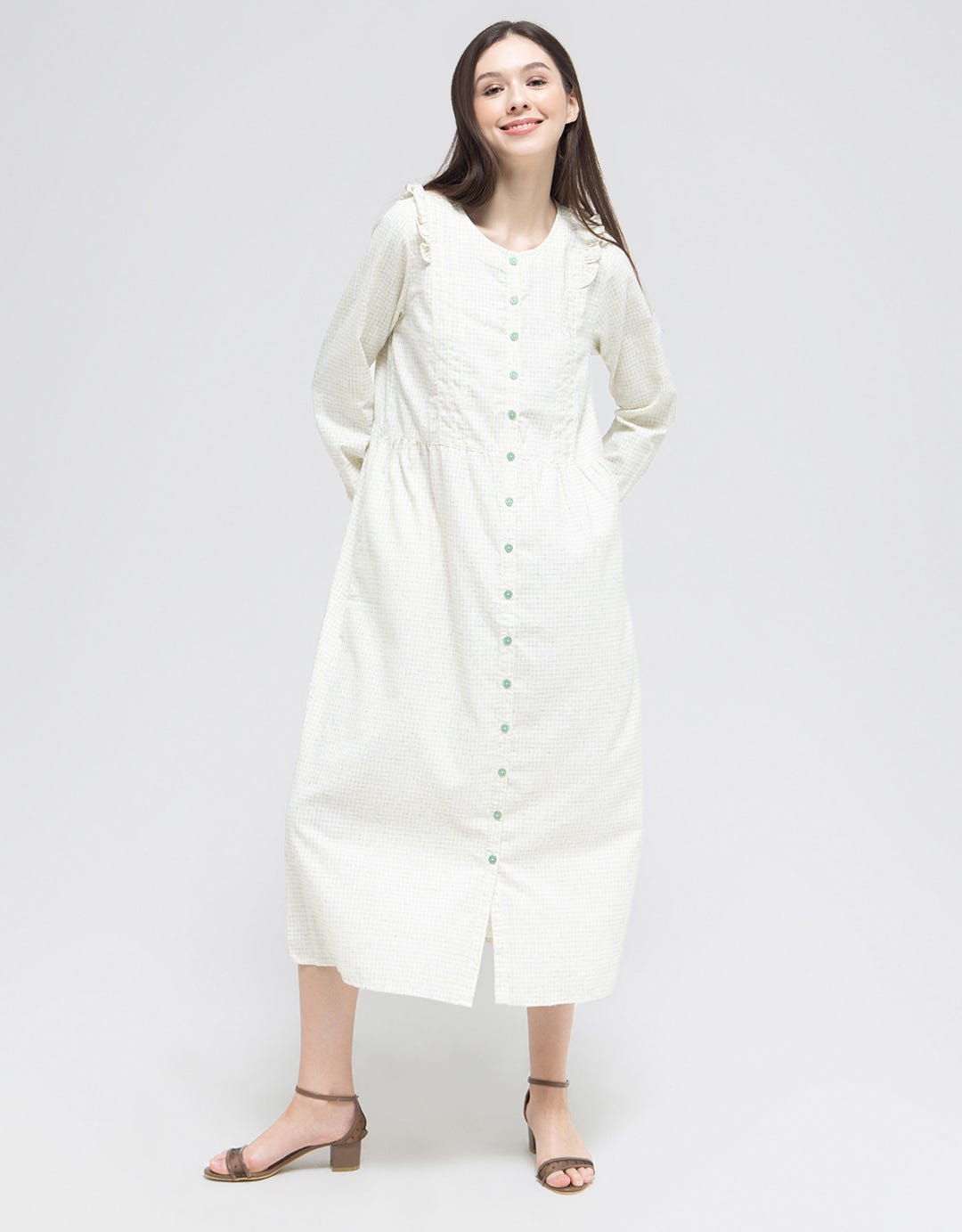 Triset Checks Rimple Long Dress Wanita