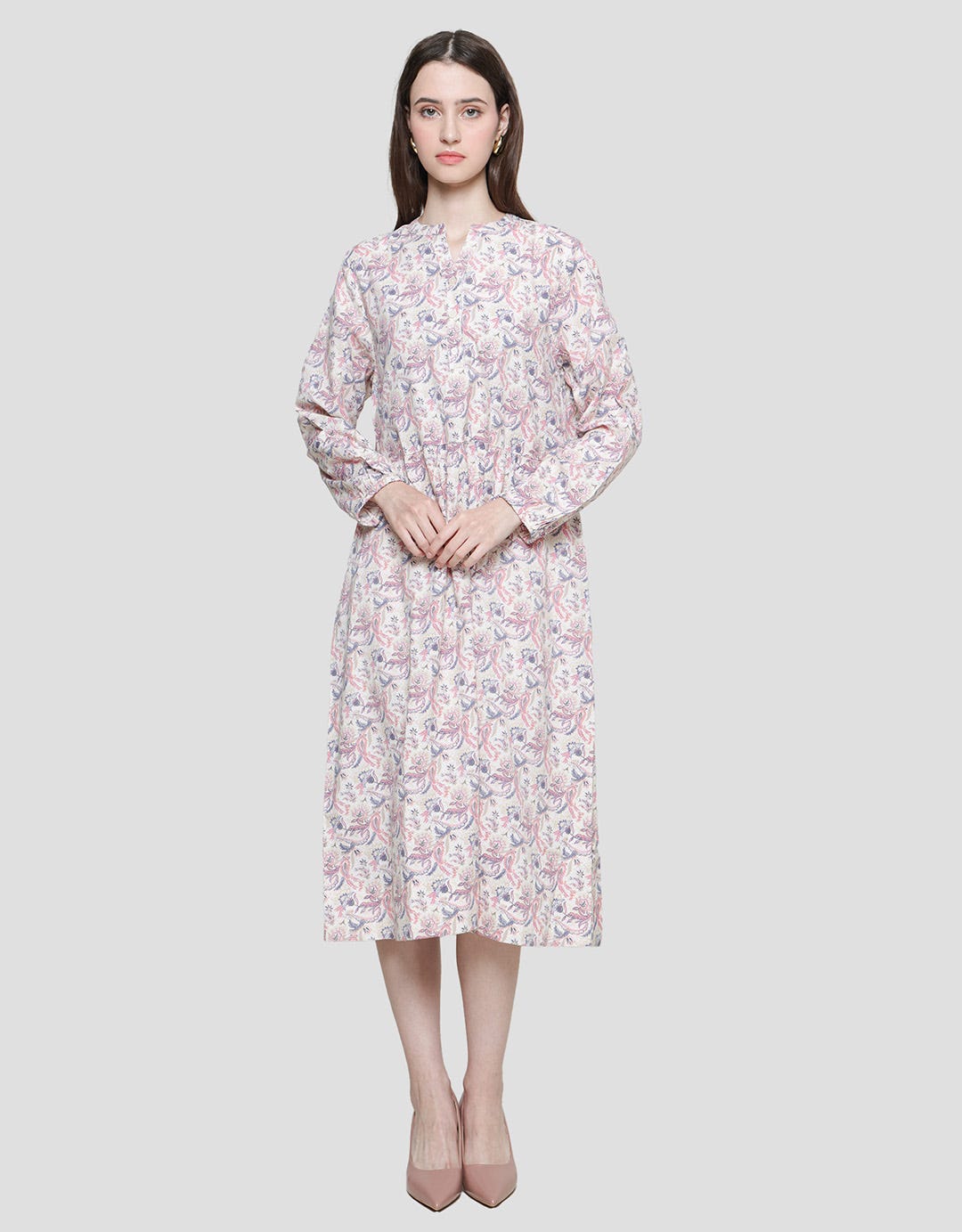 - Detail lengan panjang, kancing depan