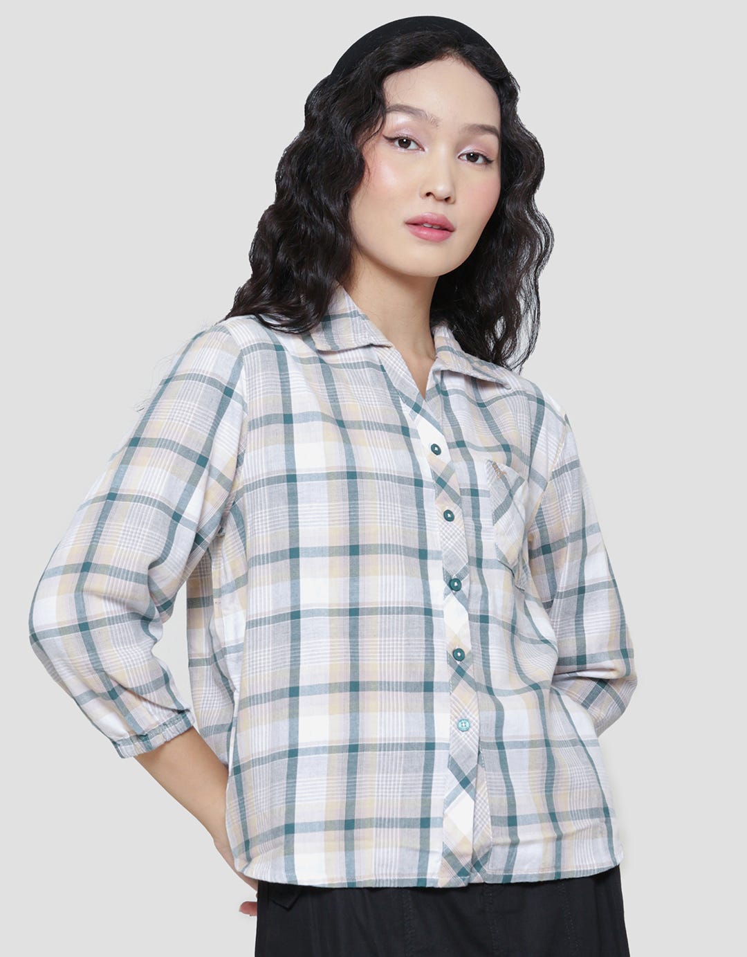 Blouse wanita dengan design yang simple dan casual, cocok untuk dijadikan outfit keseharian saat bepergian. Bahan yang berkualitas akan nyaman saat digunakan sepanjang hari.