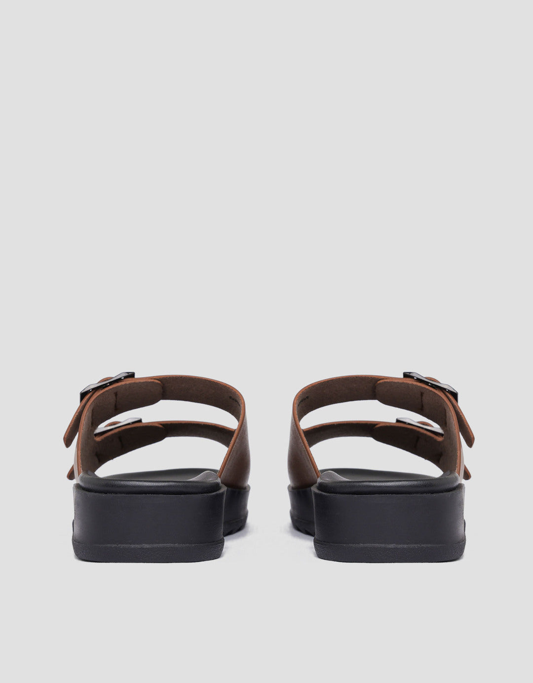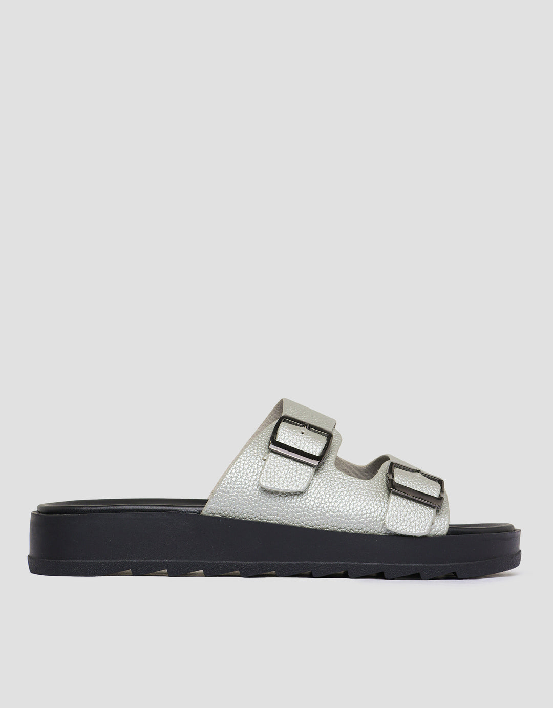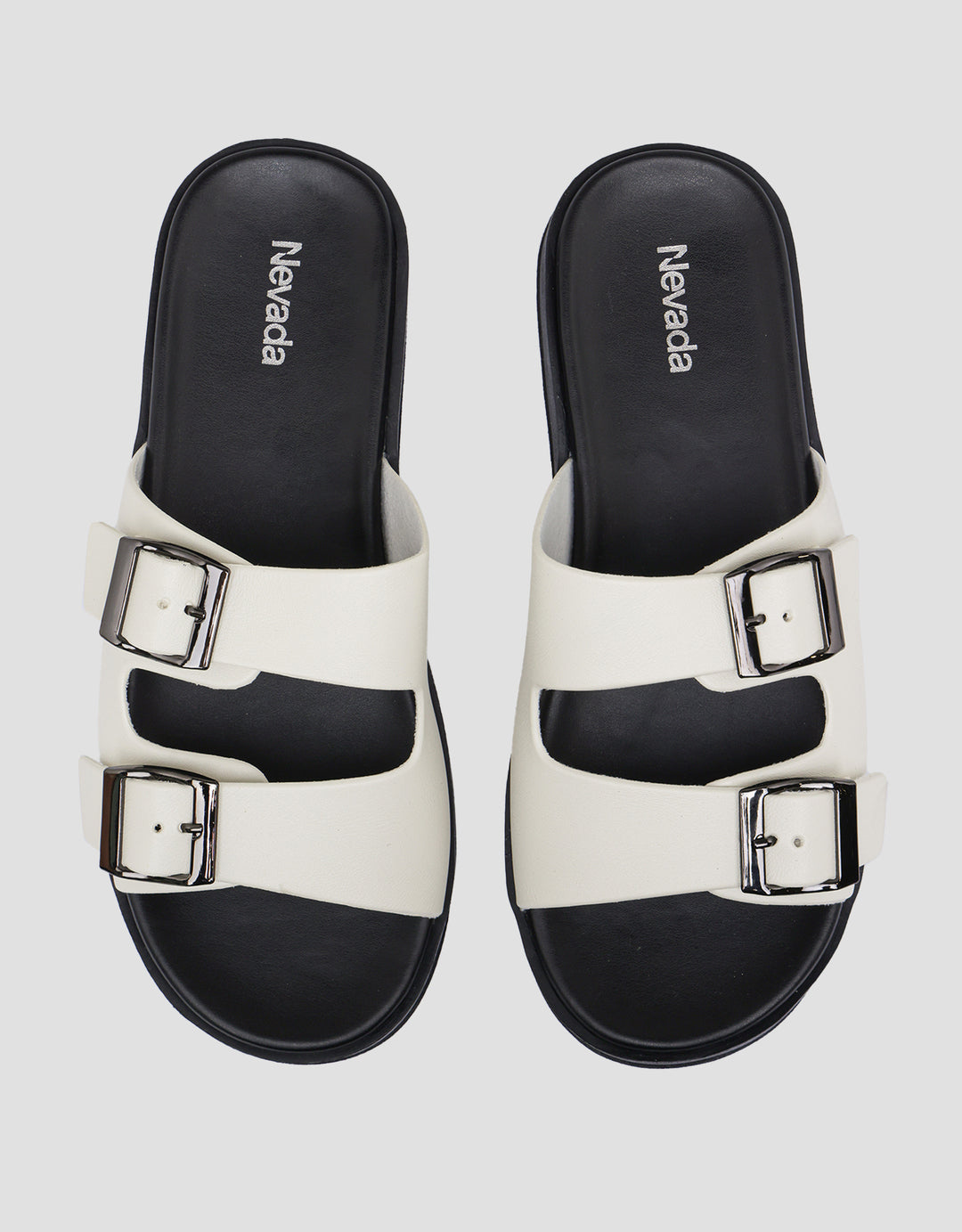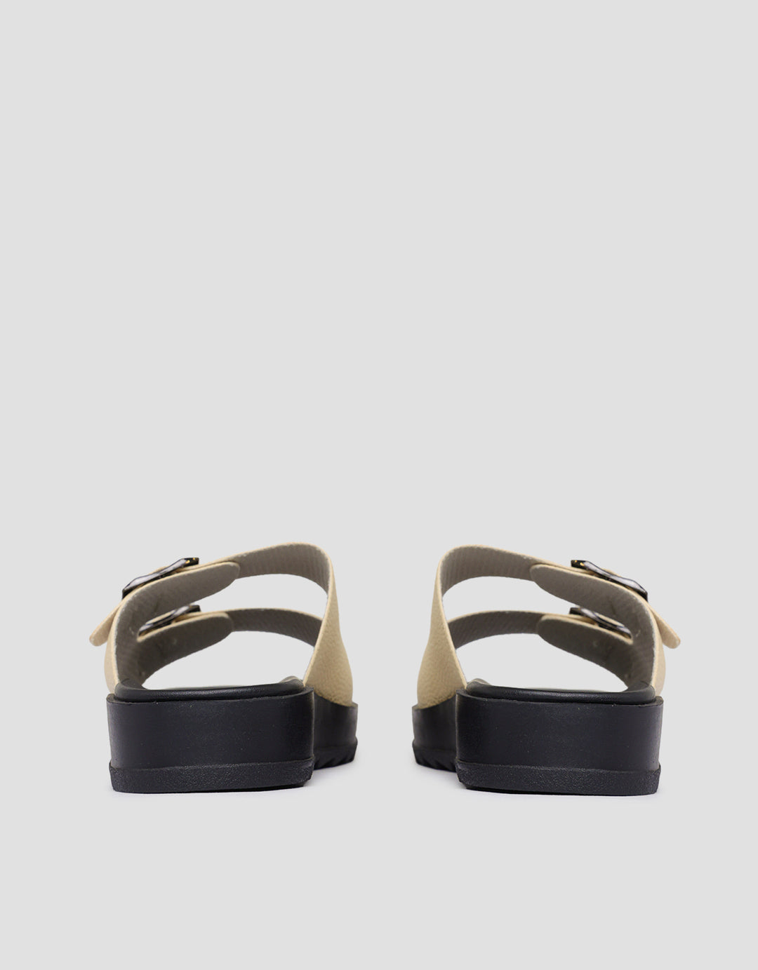 - Model slip-on dengan dua strap dan detail buckle adjustable untuk kenyamanan maksimal