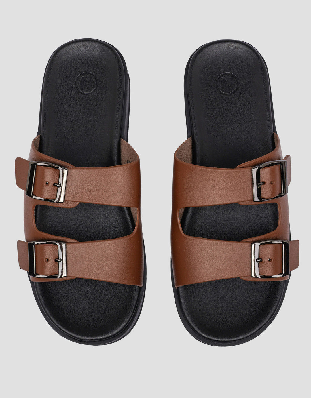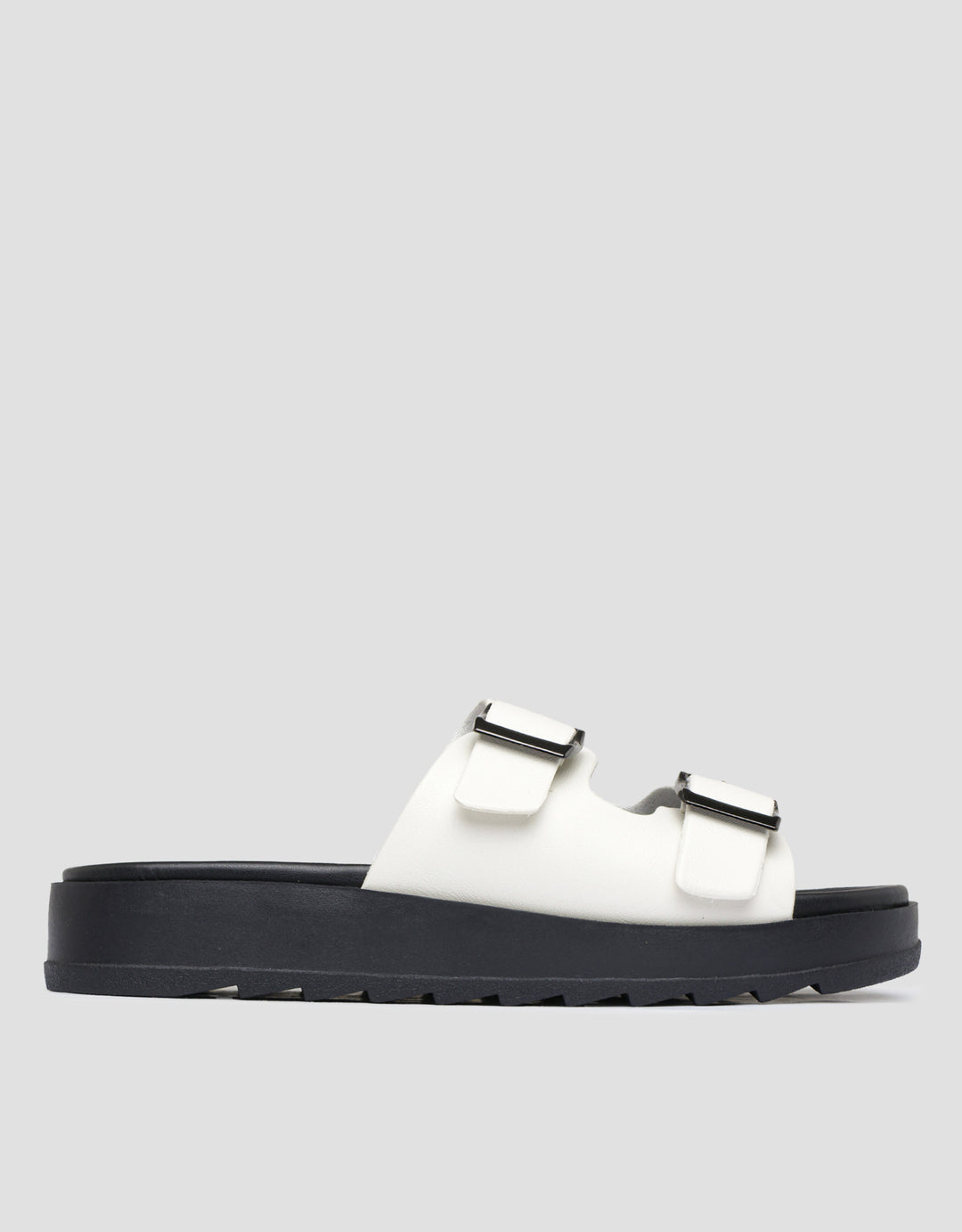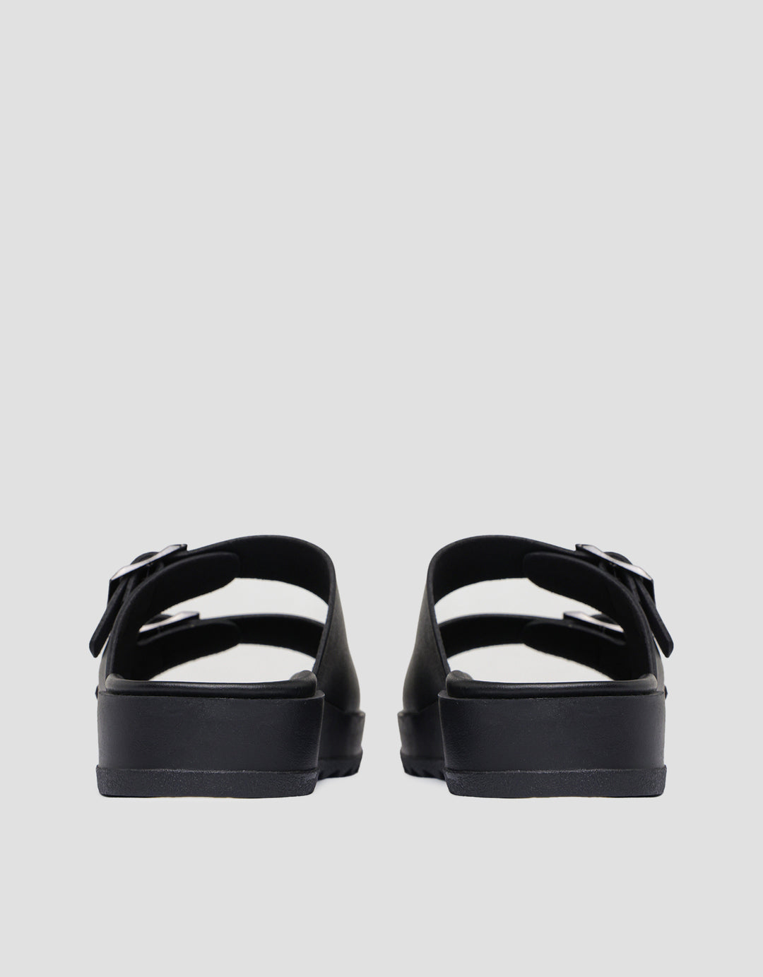 - Model slip-on dengan dua strap dan detail buckle adjustable untuk kenyamanan maksimal