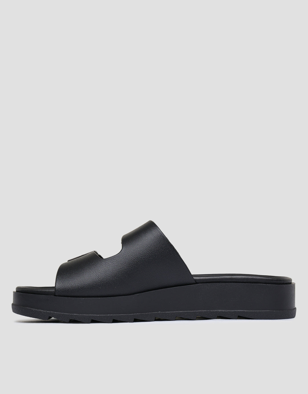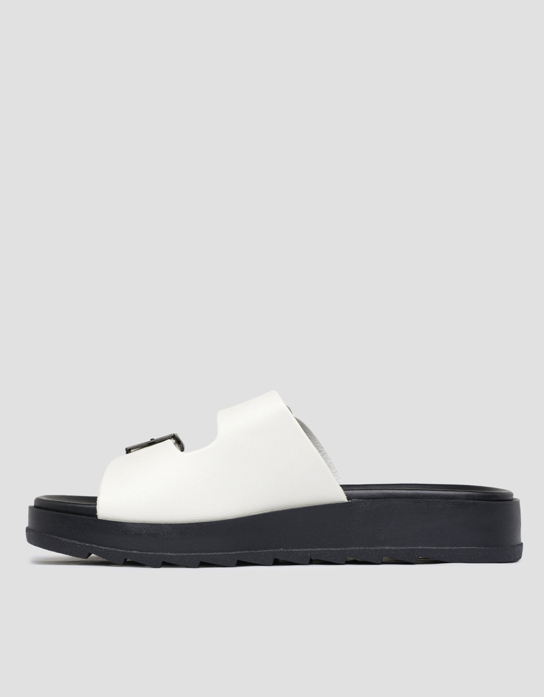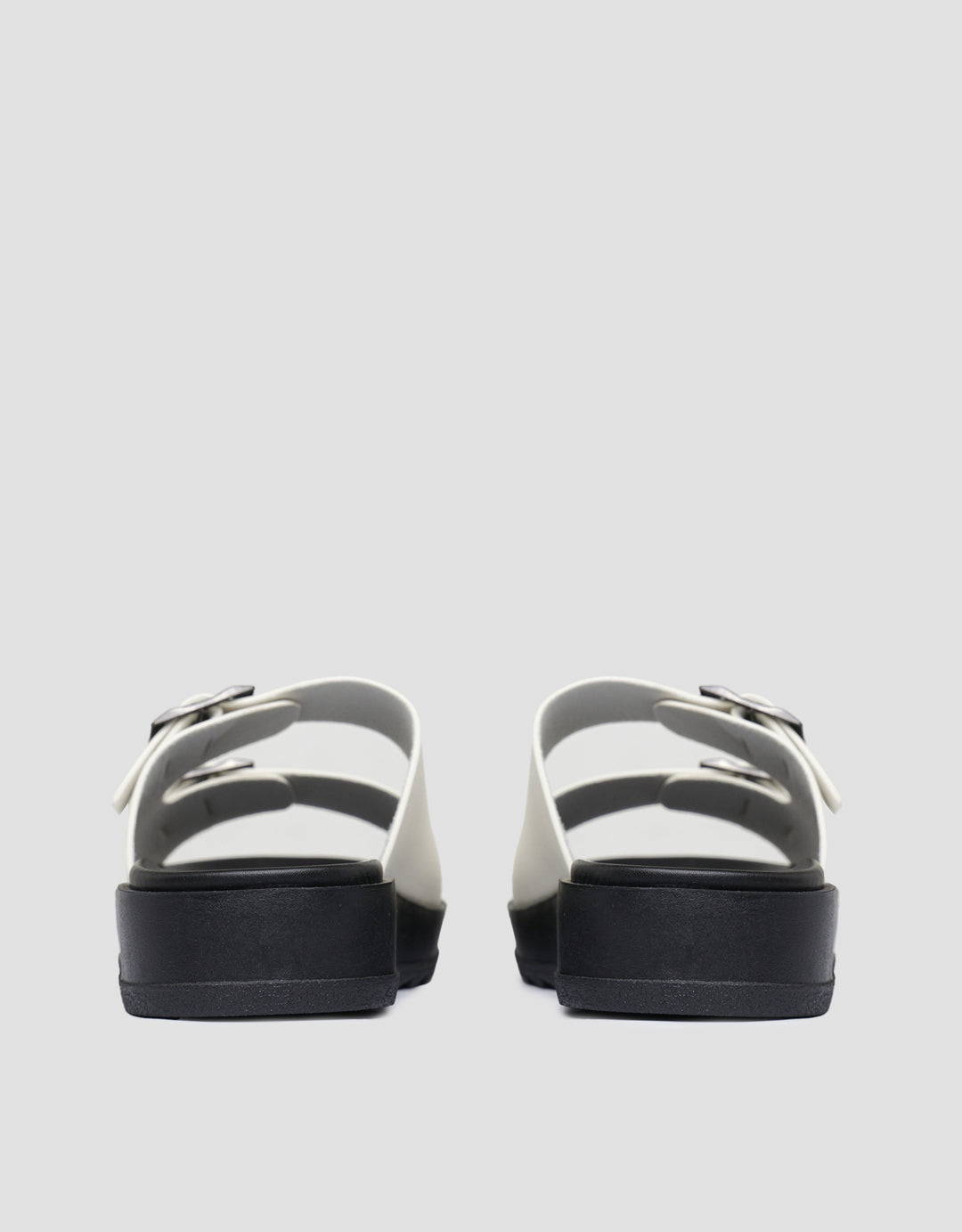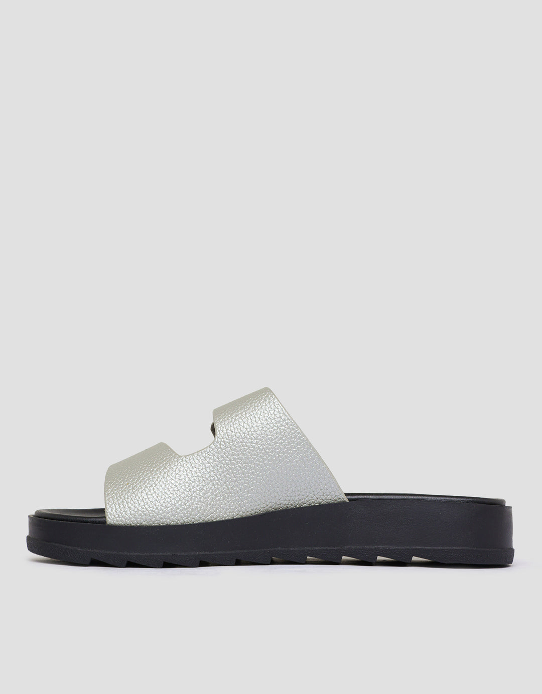 - Model slip-on dengan dua strap dan detail buckle adjustable untuk kenyamanan maksimal