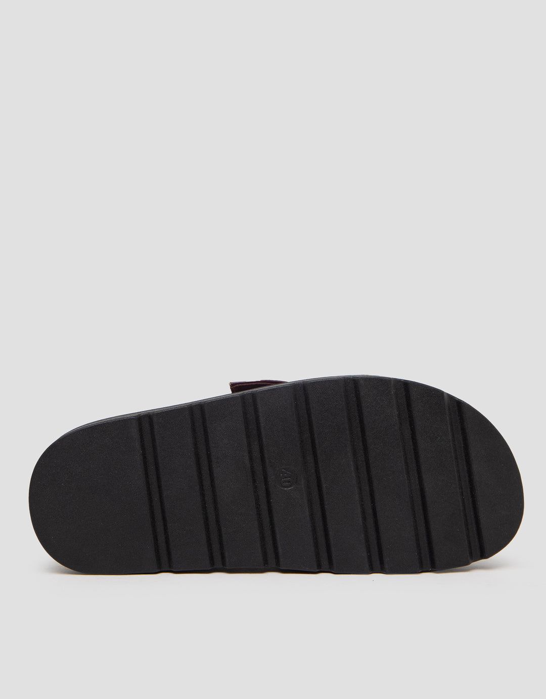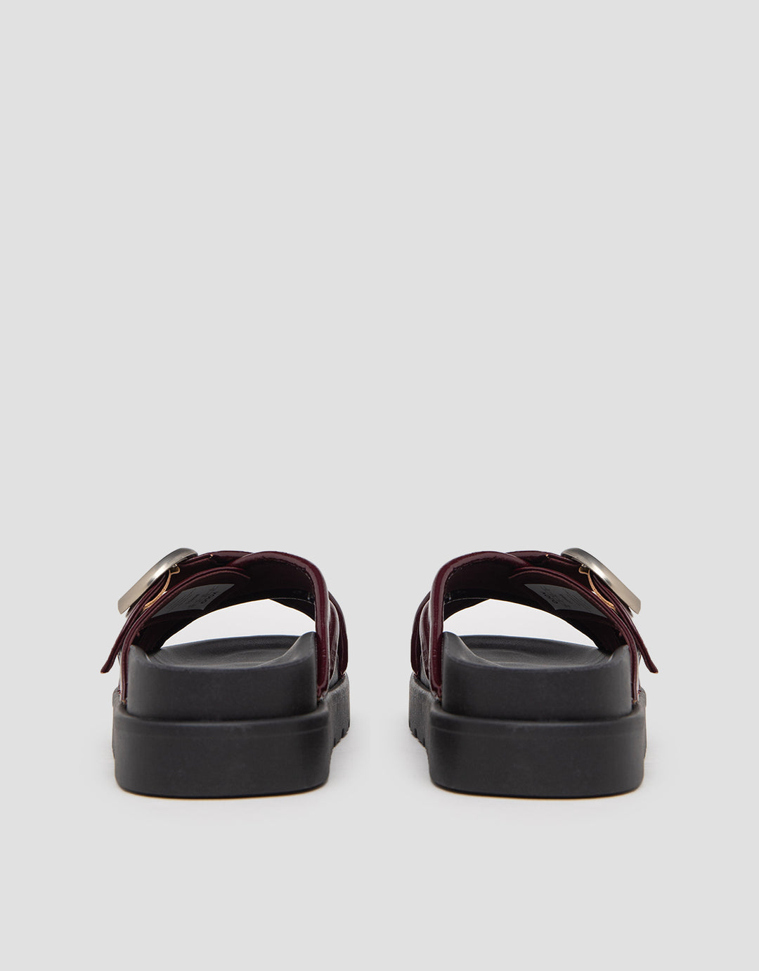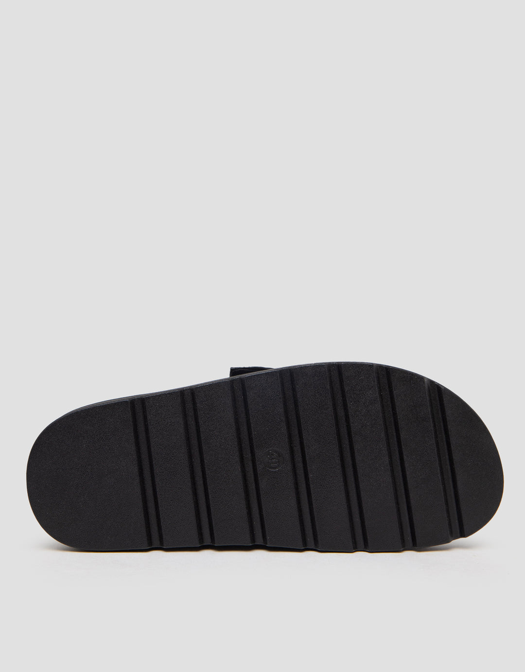Sandal wanita dengan desain modern dengan strap silang yang sleek dan buckle metal sebagai aksen mewah. Warna hitam glossy memberi kesan bold, classy, dan mudah dipadukan dengan berbagai outfit—dari kasual hingga semi-formal.