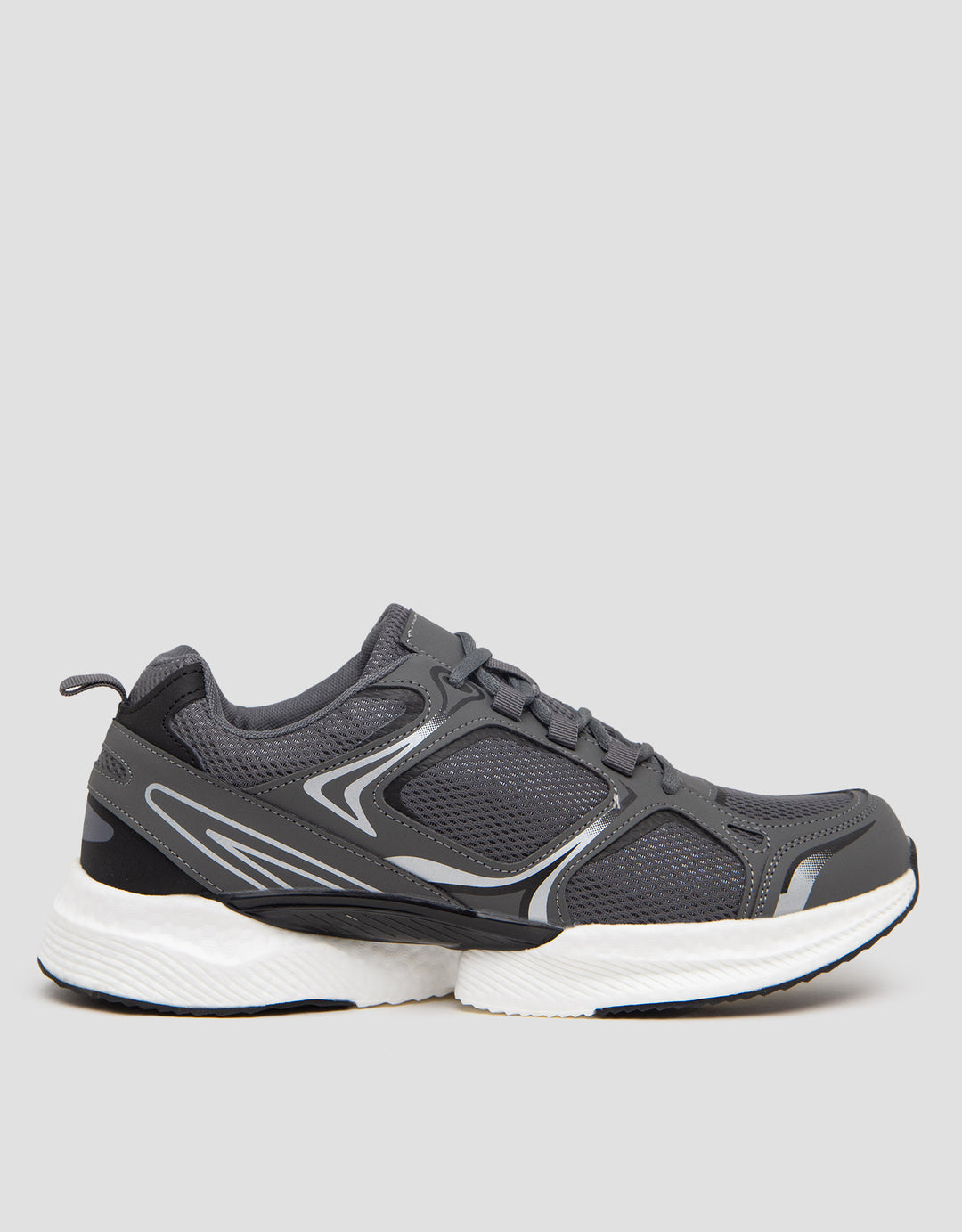 Sepatu running ini menggunakan upper mesh yang breathable untuk menjaga kaki tetap sejuk sepanjang hari. Lapisan foam pada insole menyesuaikan bentuk telapak kaki, membantu meredam tekanan dan memberikan kenyamanan maksimal meski dipakai lama.