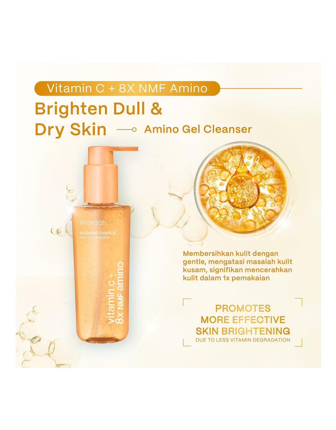Pembersih wajah yang lembut dengan Vitamin C dan 8x^ NMF Amino yang membantu mencerahkan dan melembapkan kulit kusam tanpa meninggalkan rasa kering ketarik.