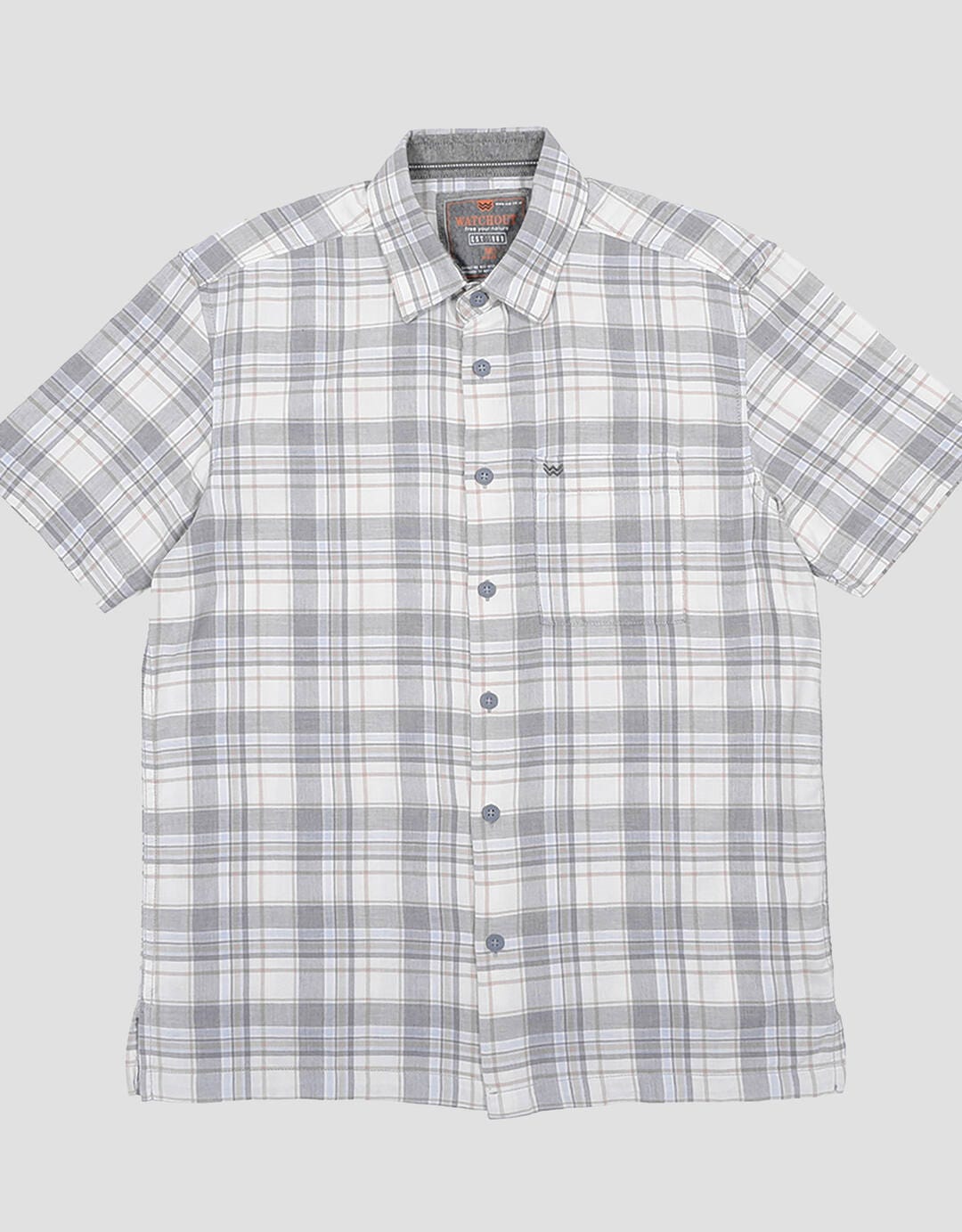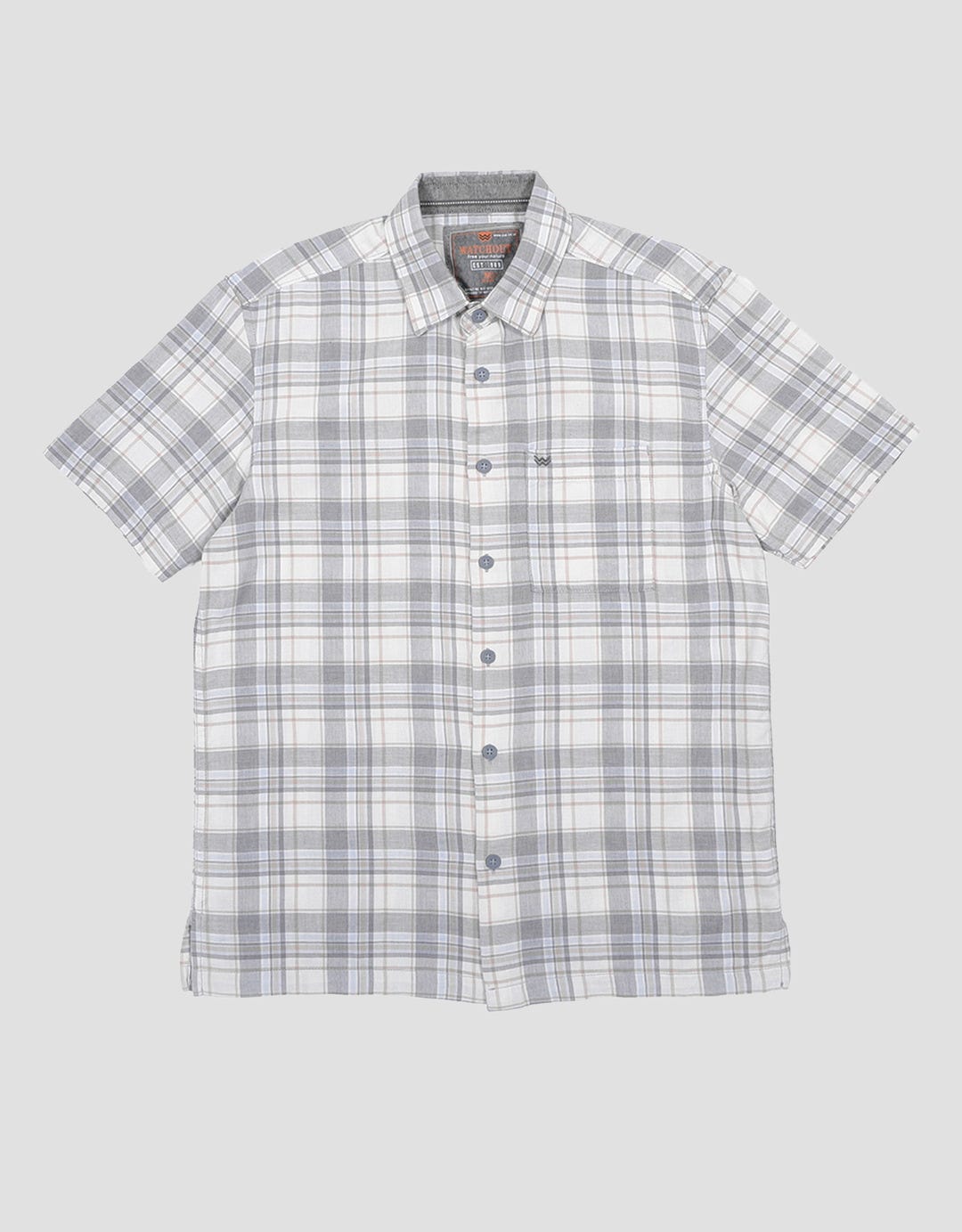 Watchout Print Check Jeans Kemeja Lengan Pendek