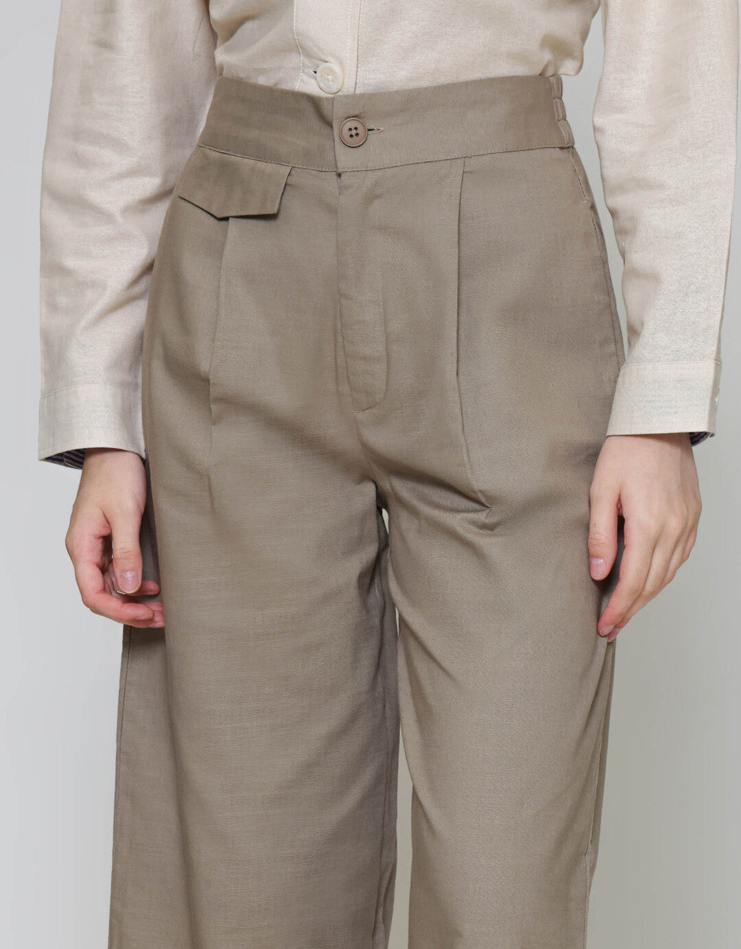 ZES Linen Look Straight With Pocket Underwaist Celana Panjang Wanita TSBWB006