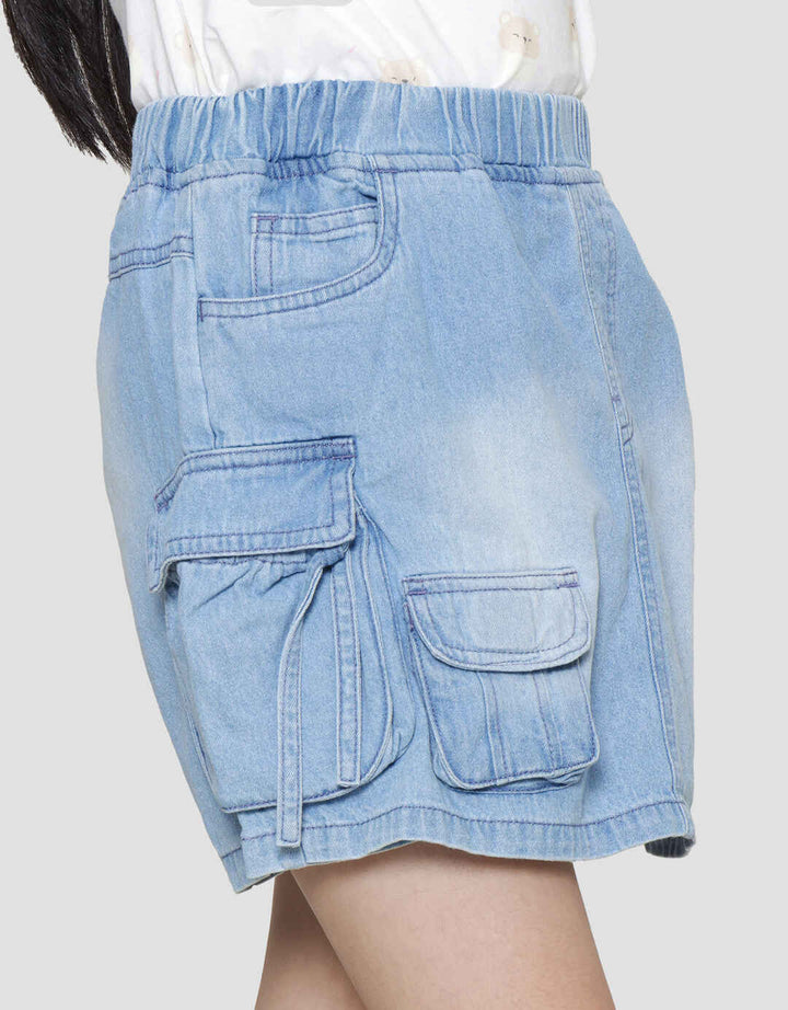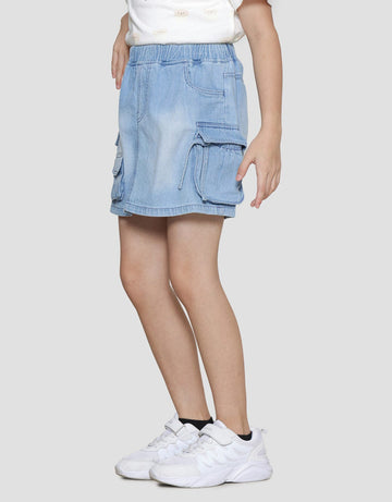 Aero Denim Kantong Tali Serut Mini Skort Anak Perempuan
