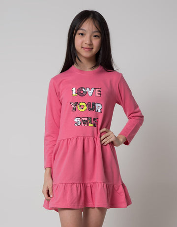 Aero Long Sleeve Midi Dress Flip Sequin Wording