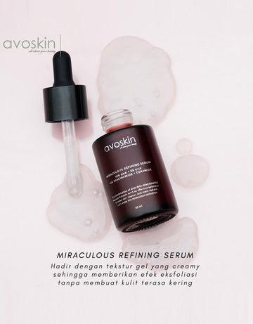 - Avoskin Miraculous Refining Serum berfungsi sebagai chemical exfoliasi yang mengandung 10% AHA + 3% BHA sebagai agen eksfoliator