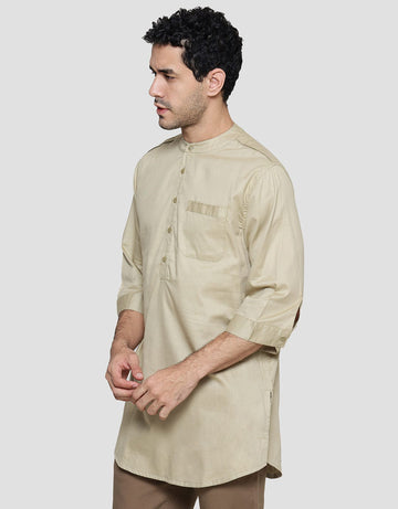 Details Solid Rayon Twill Plakat Polos Koko Gamis Lengan 3/4 Pria