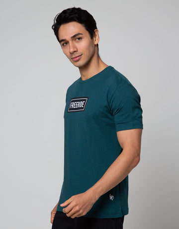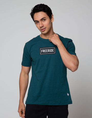 Freeride T-Shirt Pria Green Freeride Kotak Hitam List Putih