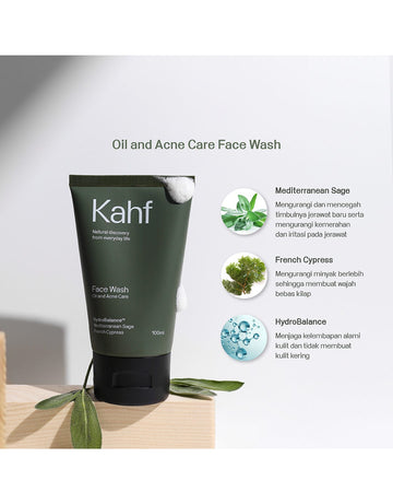 Kahf Oil and Acne Care Face Wash merupakan sabun pembersih wajah dengan kandungan HydroBalance dan Pure Cleanse menjadikan wajah bersih dan lembap secara menyeluruh. Diperkaya dengan ekstrak Mediterranean Sage dan French Cypressnya yang dapat mengangkat minyak berlebih selama 12 jam serta membantu melawan jerawat. Cocok digunakan untuk jenis kulit wajah berminyak dan berjerawat.