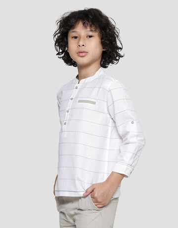 Little M Casual Stripe Kemeja Koko Lengan Panjang Anak Laki-laki