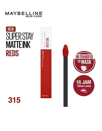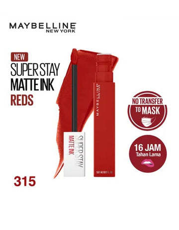 Maybelline Super Stay Matte Ink - Lip cream no 1 dari Maybelline New York yang memiliki pigmentasi tinggi sehingga dapat menutup bibir dalam satu kali oles.
